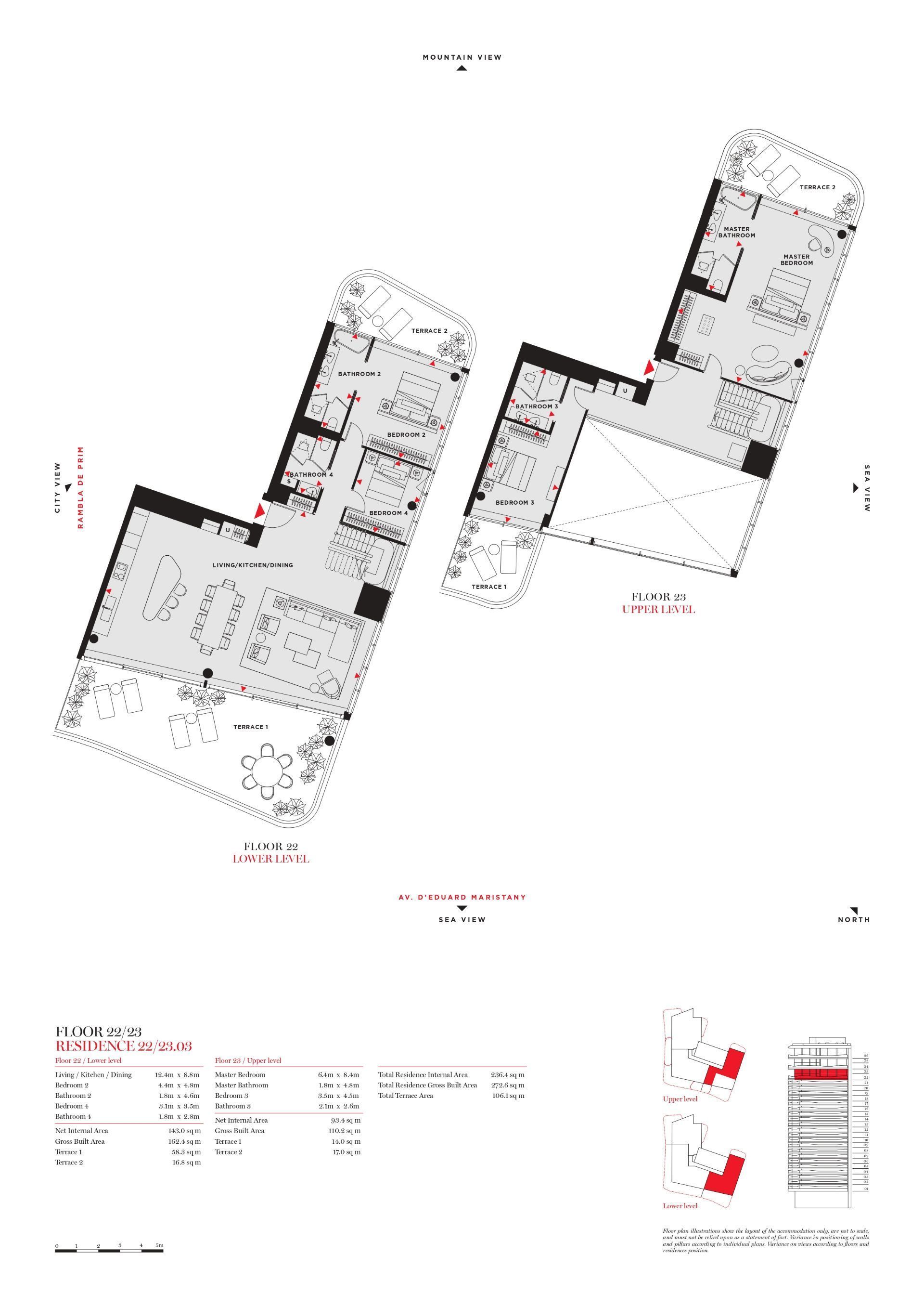 Unitat amb 4 dormitoris, 4 banys, 273 m² de superfície construïda.