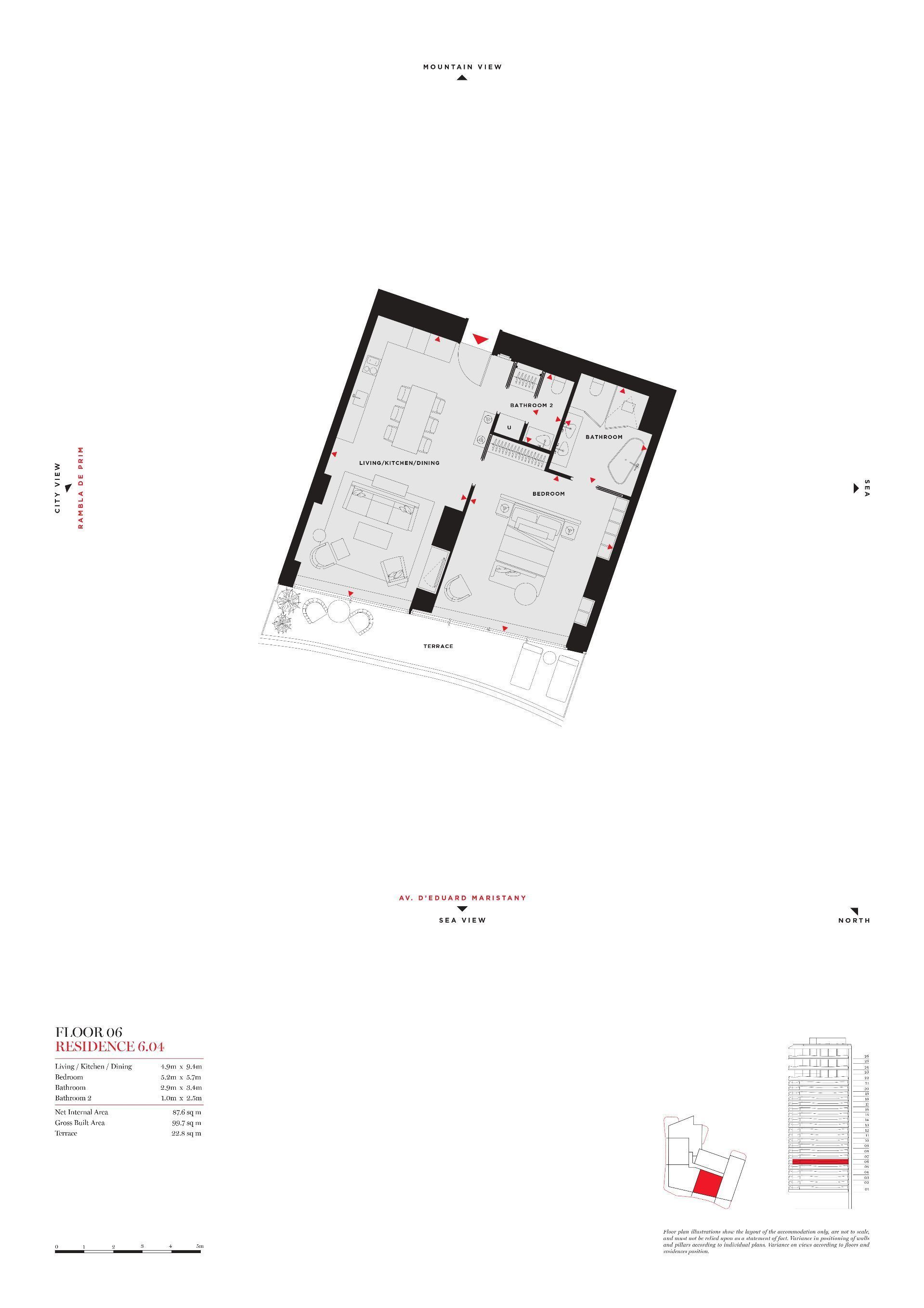 Unitat amb 1 dormitori, 2 banys, 100 m² de superfície construïda.