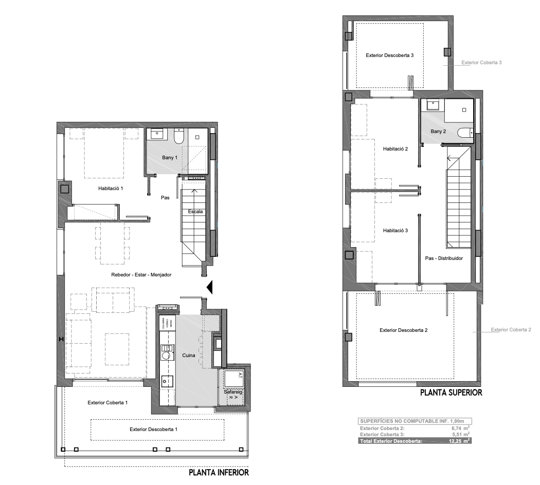 Unitat amb 3 dormitoris, 2 banys, 116 m² de superfície construïda.