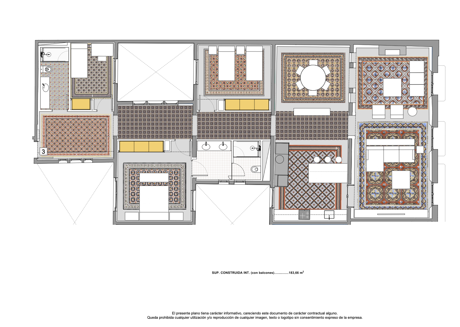 Unitat amb 3 dormitoris, 2 banys, 184 m² de superfície construïda.