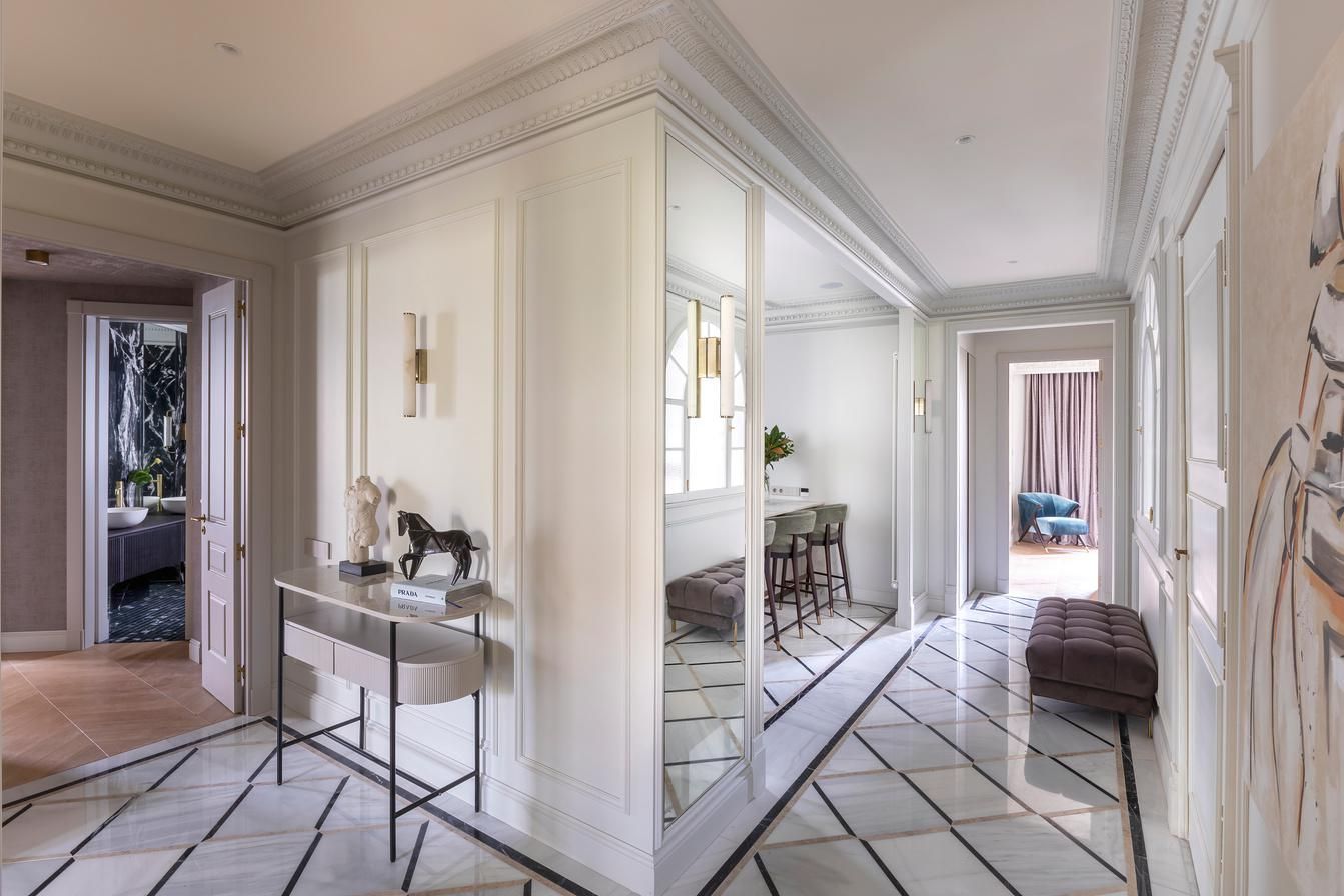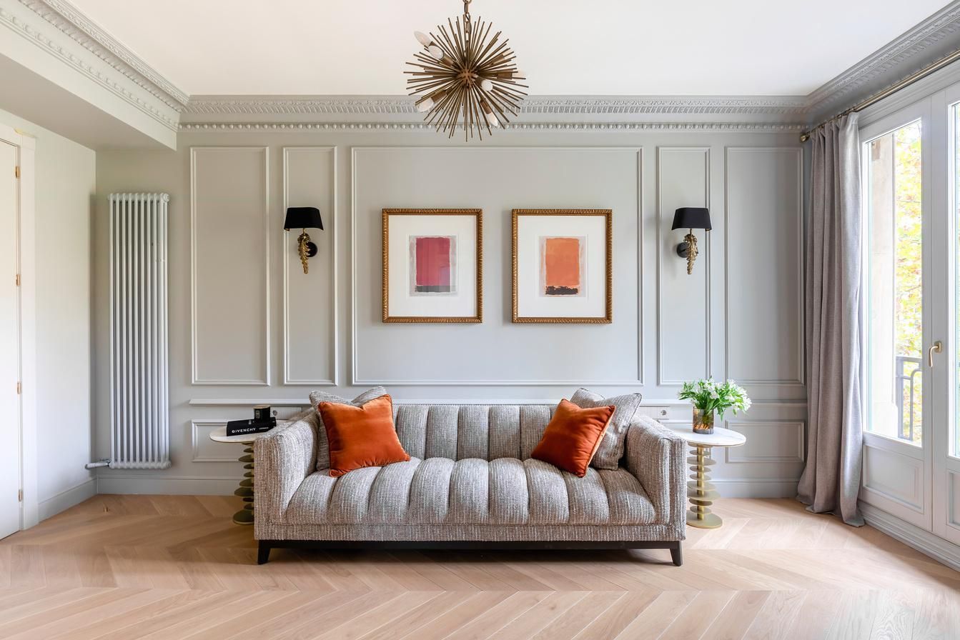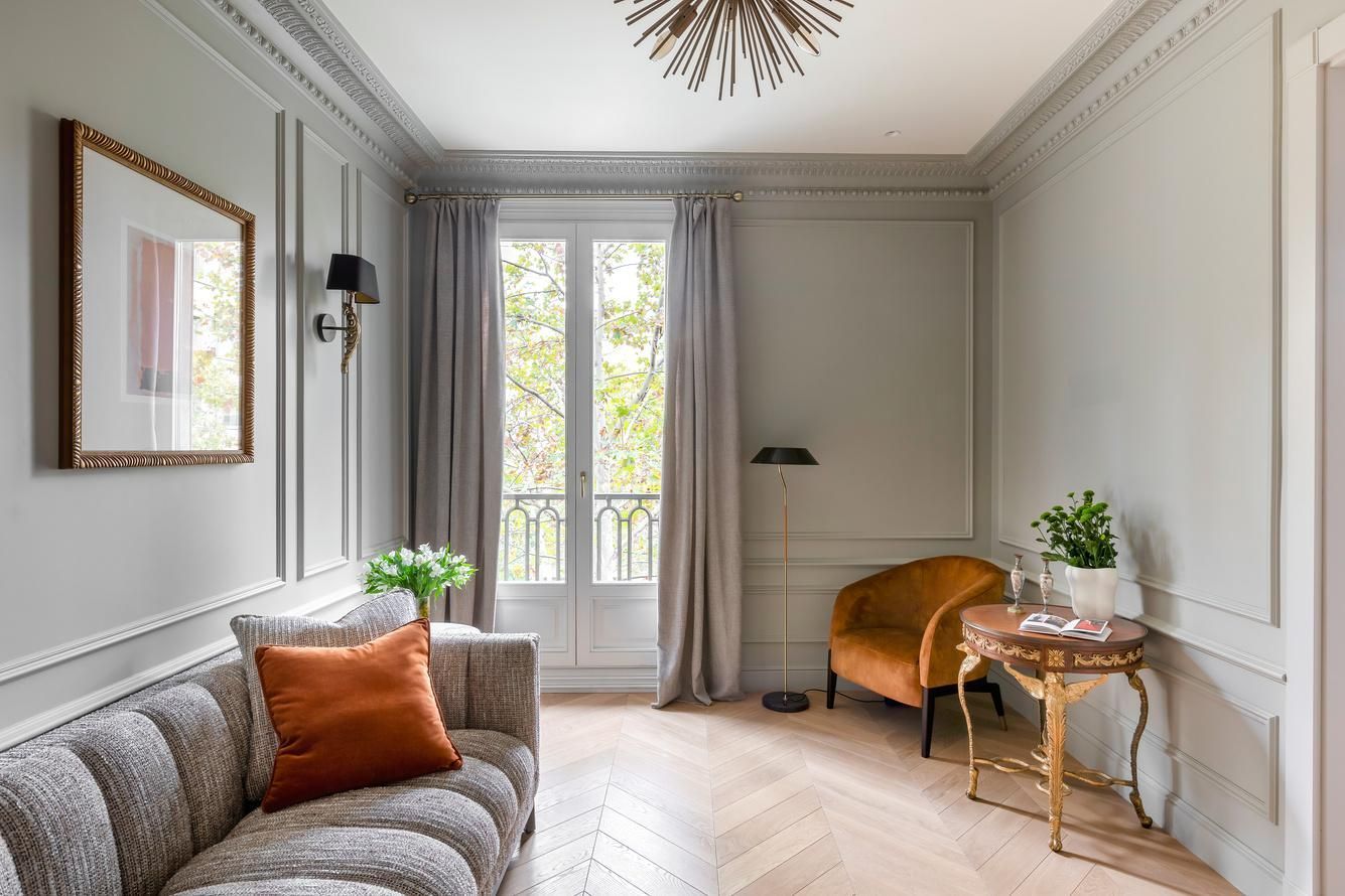 Aquest elegant pis en cantonada es troba a la quarta planta d'un edifici històric de 1900, al carrer peatonal Consell de Cent, a només una illa de Passeig de Gràcia. És totalment exterior i luminós, amb vistes a carrers tranquils, zones verdes i monuments històrics. Amb 201 m², compta amb un ampli rebedor, quatre dormitoris dobles (dos d'ells en suite), tres banys i un gran saló-menjador. La cuina, de la marca italiana Novacucina i equipada amb electrodomèstics Smeg i celler, inclou una illa funcional. Els sostres alts (3 metres) i el parquet de roure en espiga francesa aporten amplitud i elegància. La propietat ha estat completament renovada amb materials d'alta qualitat, incloent motllures de guix artesanal, acabats en marbre i mobiliari a mida. Entre les seves característiques addicionals s'inclouen calefacció per sòl radiant a cuina, rebedor i banys, dos conductes d'aire condicionat, il·luminació LED i indirecta, sistema de so integrat i sistema de seguretat.