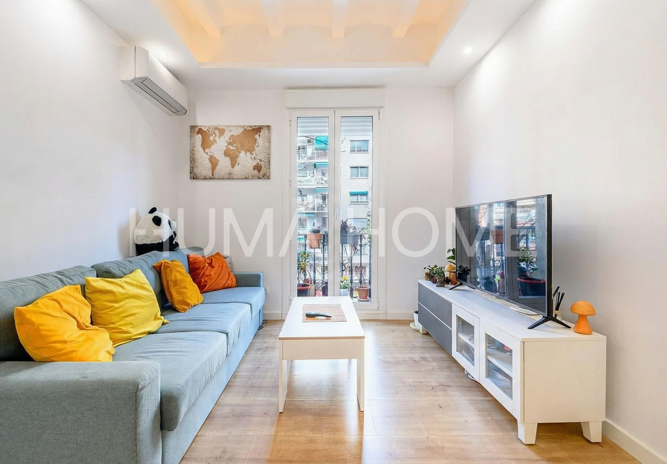 2 Habitacions, 2 Banys - Llest per a Entrar a Viure Acollidor pis de 57m² construïts a l'Avinguda Mistral, entre Rocafort i Calabria. Finca clàssica amb caràcter i elements originals. Primera planta real (tercera) amb bona entrada de llum natural. L'habitatge compta amb saló-menjador lluminós amb sortida a balcó, cuina reformada i armaris encastats. Una habitació de matrimoni, una individual i dos banys, un amb dutxa. Calefacció individual a gas i aire acondicionat. Recentment reformada, llista per a entrar a viure o com a inversió. Zona amb vida de barri, comercis, transport públic i tots els serveis a pocs passos. A 5 minuts de Plaça Espanya, a prop de línies L1, L2 i L3 de metro.