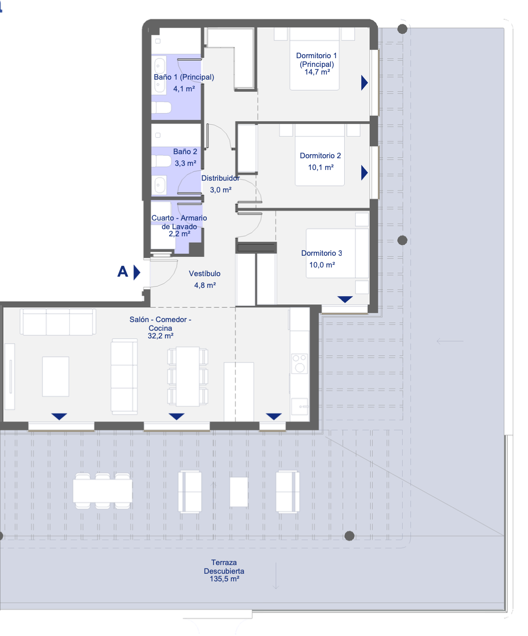 Unitat amb 3 dormitoris, 2 banys, 252 m² de superfície construïda.