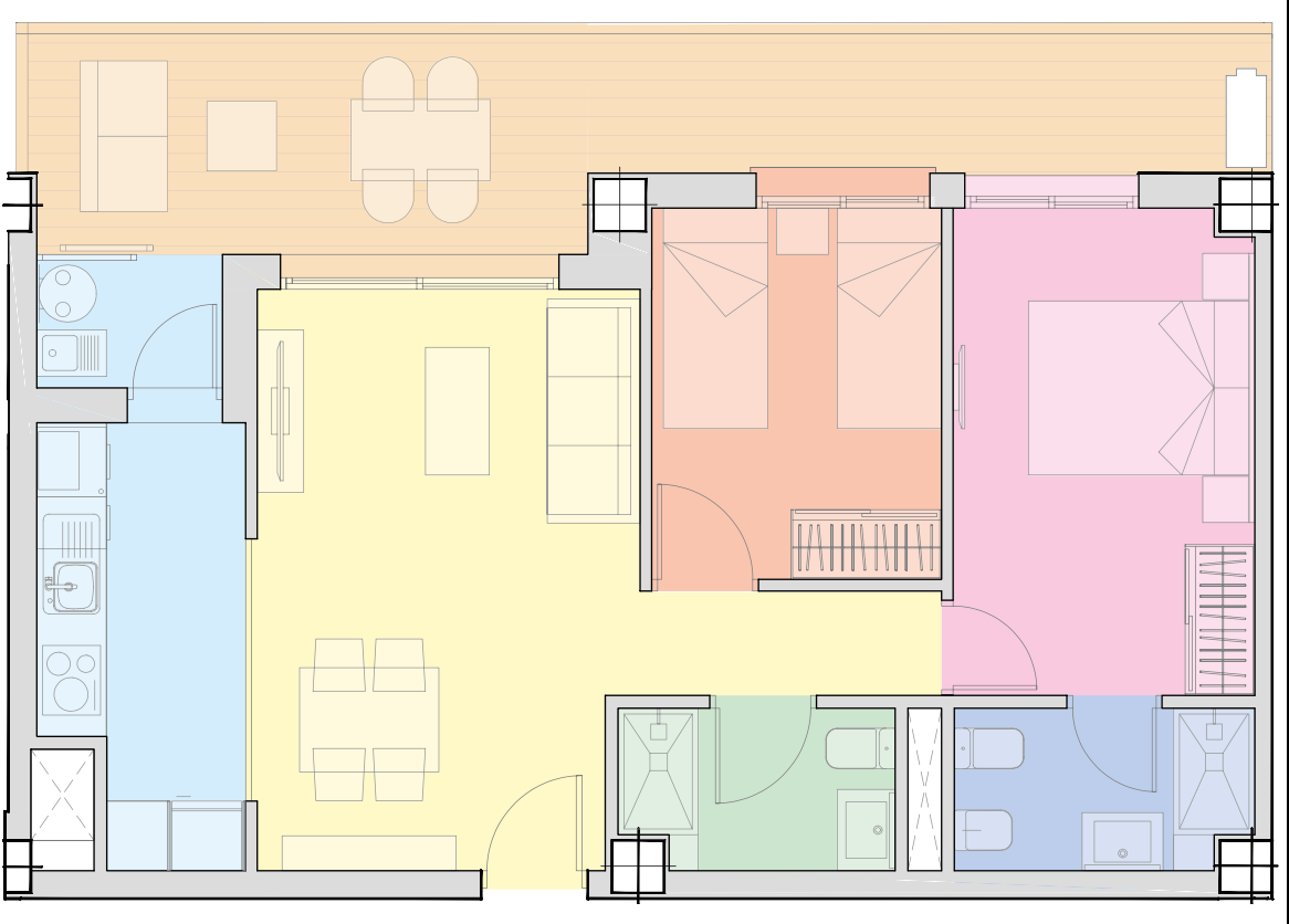 Unitat amb 2 dormitoris, 2 banys, 82 m² de superfície construïda.