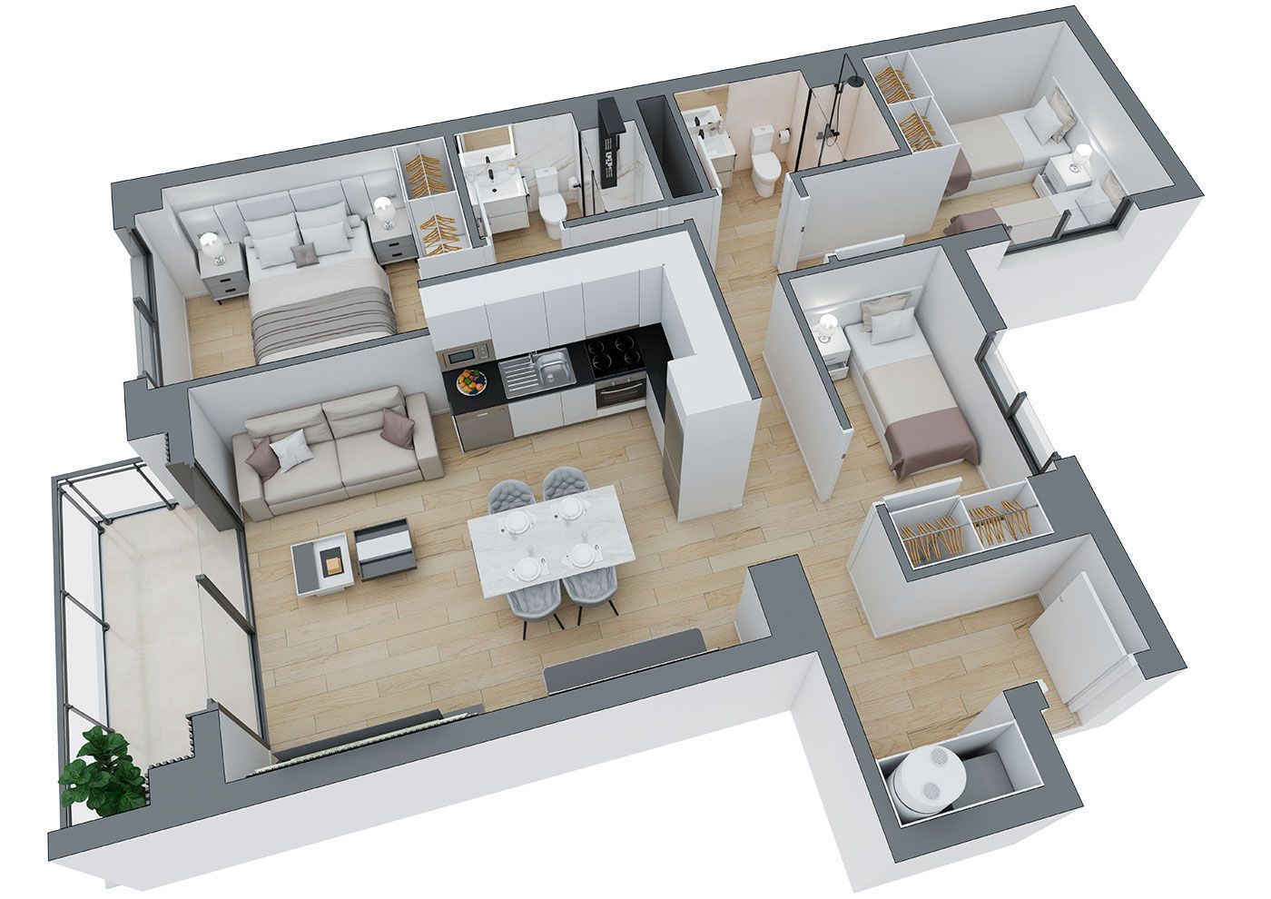 Unitat amb 3 dormitoris, 2 banys, 85 m² de superfície construïda.