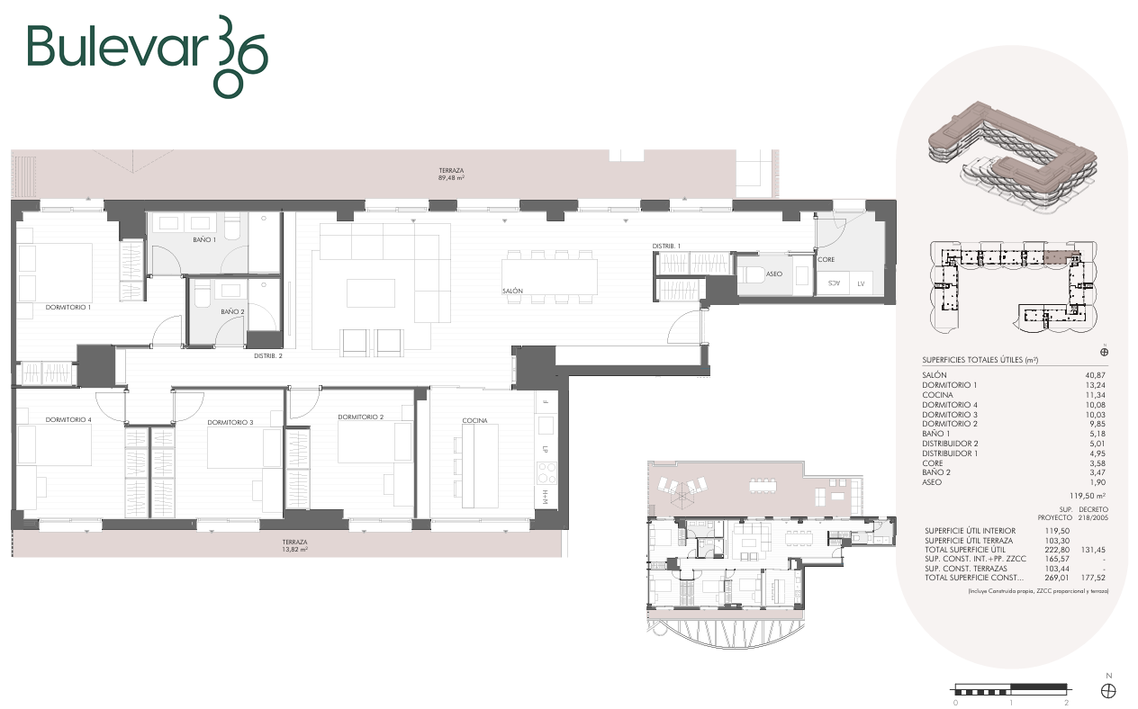 Unitat amb 4 dormitoris, 2 banys, 270 m² de superfície construïda.