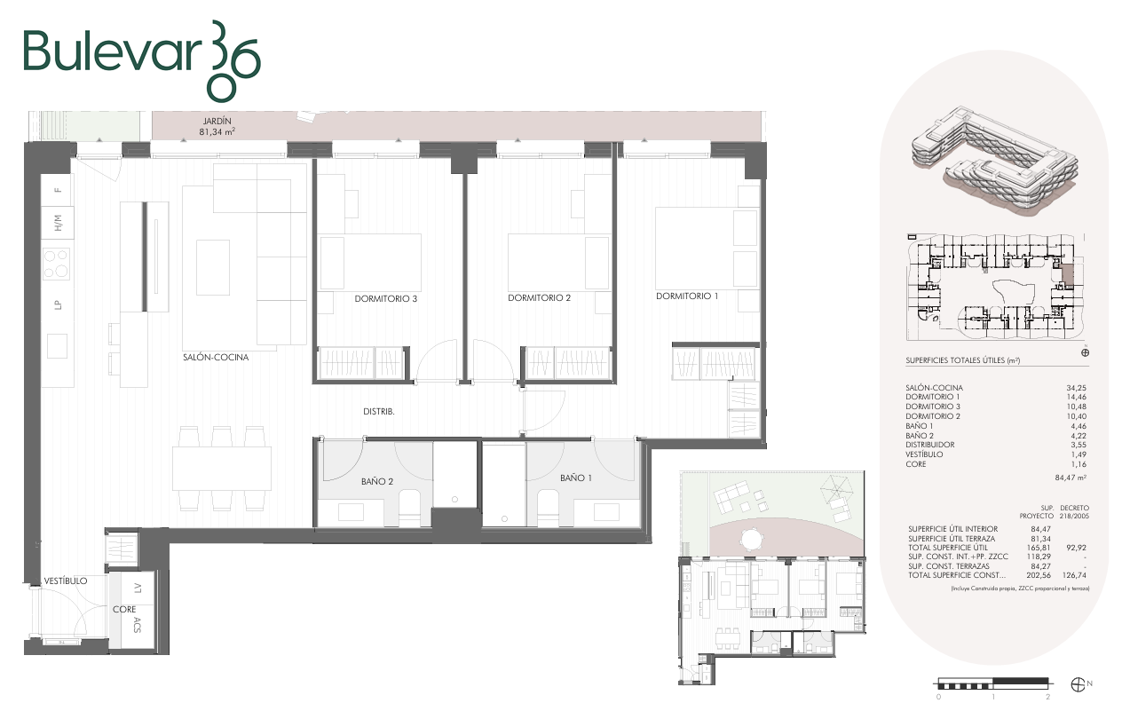 Unitat amb 3 dormitoris, 2 banys, 203 m² de superfície construïda.