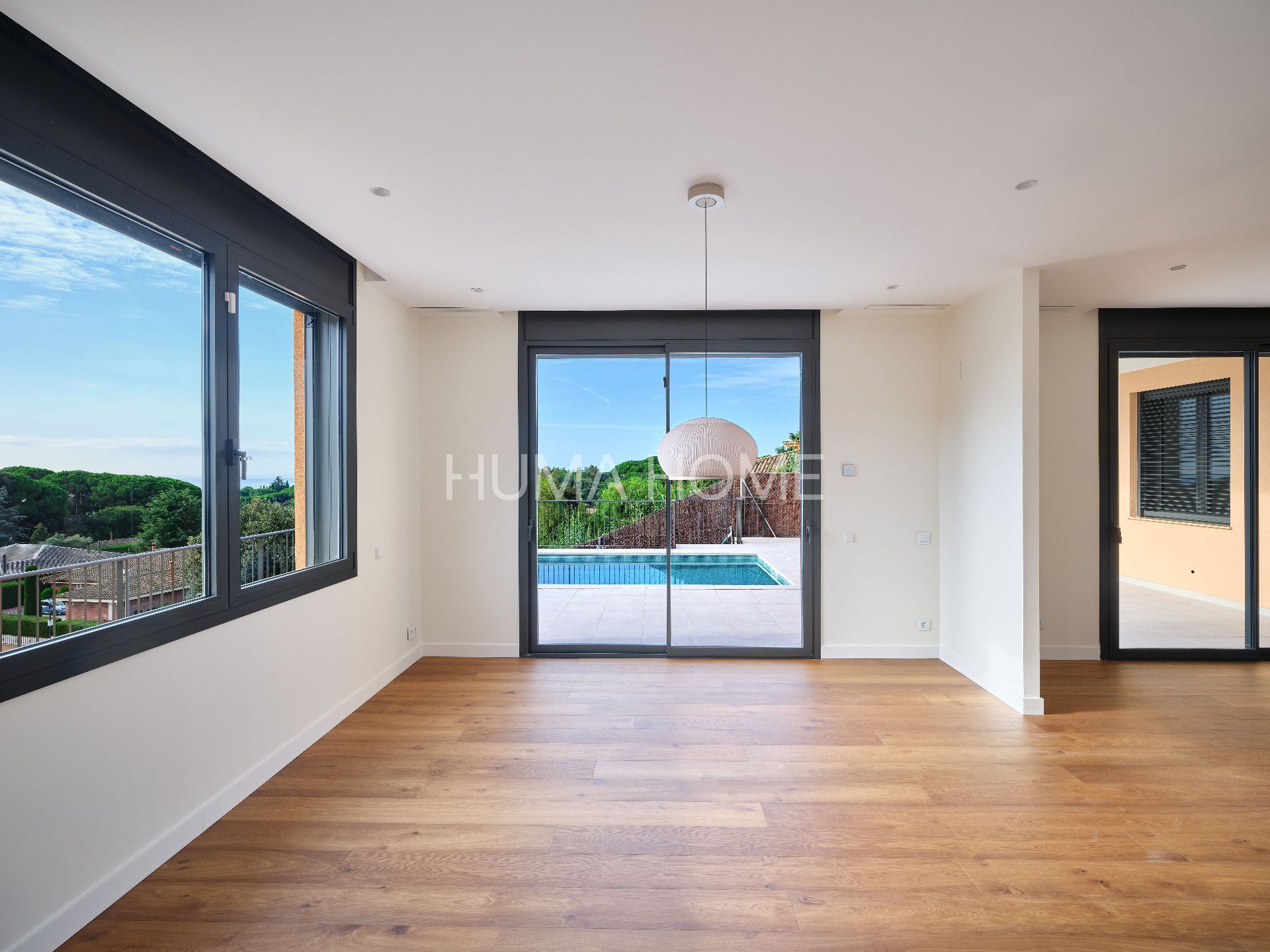 Sant Vicenç de Montalt — Urbanització SuperMaresme Golf Exclusiva villa de nova construcció amb impressionants vistes panoràmiques al mar, ubicada a la privada urbanització SuperMaresme Golf. A minuts del centre de Sant Vicenç de Montalt, Sant Andreu de Llavaneres i del Club Nàutic Port Balís. La propietat de 340m² construïts en parcel·la de 817m² ofereix 4 amplis dormitoris amb vistes despejades, 3 banys complets amb acabats premium, gran saló de concepte obert i cuina de disseny amb illa central i rebost espaït. Totes les estances gaudeixen de vistes al mar i al verd. El disseny bioclimàtic elegant i funcional inclou sostres alts, grans finestres amb vidre baix emisiu, persianes SuperGrad ajustables, sistema d'aïllament tèrmic exterior i sòl radiant amb control per zones Airzone. Climatització per conductes amb bomba de calor i sistema aerotèrmic Vaillant d'alta eficiència. Els exteriors compten amb piscina d'aigua salada amb mosaic Rosa Gres, àmplies terrasses antilliscants, jardí personalitzable i dos places d'aparcament independents. Preinstal·lació per a panells solars inclosa.