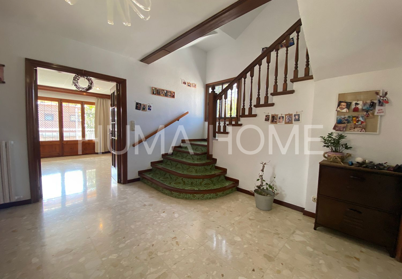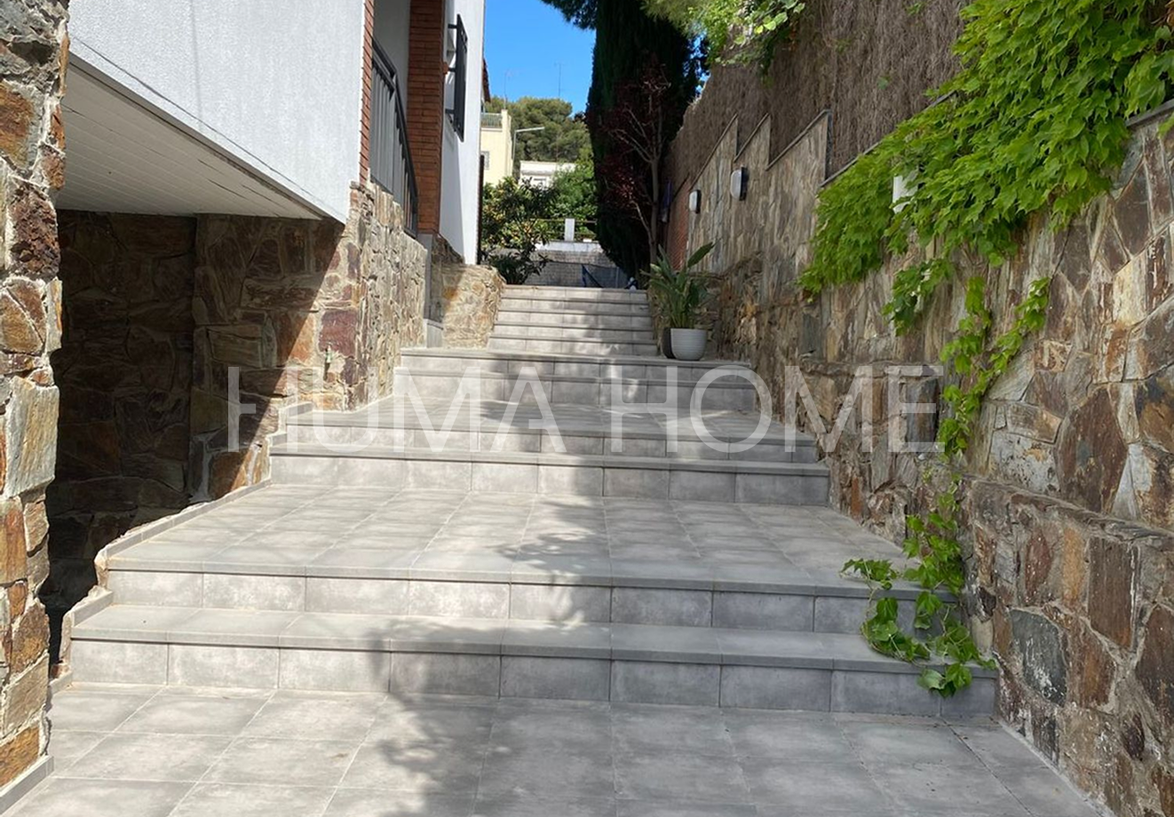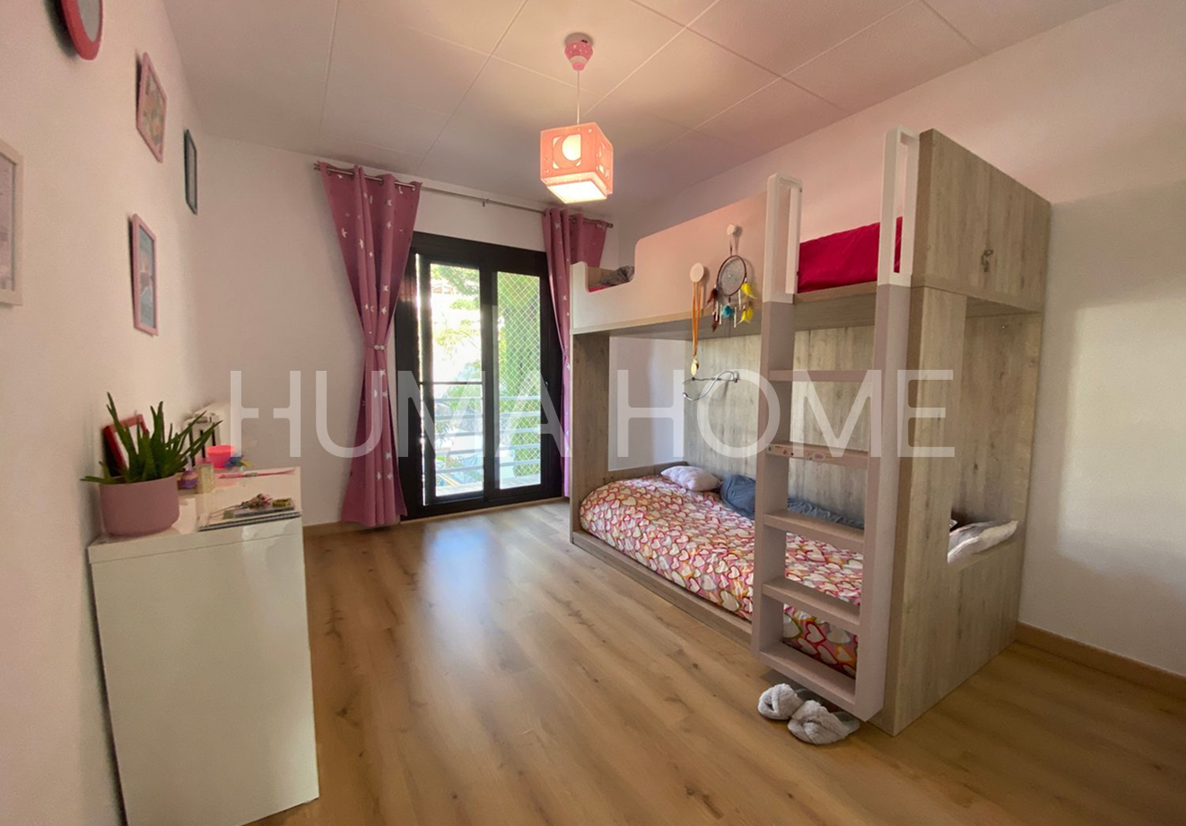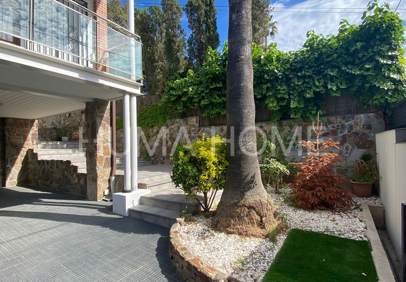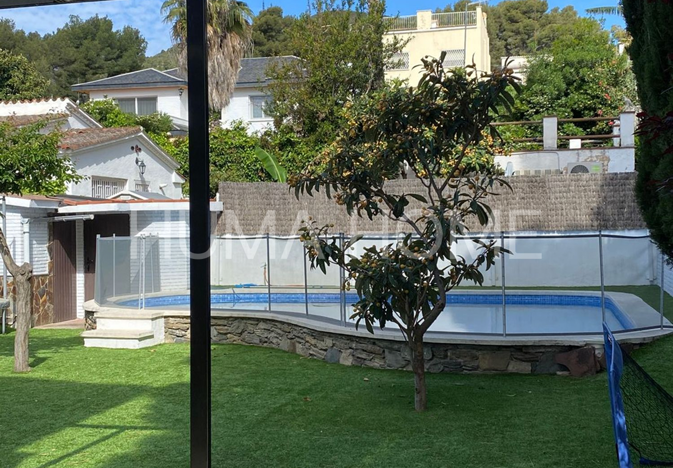 260m² Construïts, Jardí i Vistes al Mar Casa independent de 260m² en parcel·la de 460m² en una de les millors zones de Montemar, Castelldefels. Quatre plantes ben distribuïdes amb jardí cuinat i piscina d'aigua salada reformada recentment. L'habitatge compta amb quatre habitacions dobles, dos banys complets i un lavabo. La planta baixa ofereix saló-menjador amb xemeneia, cuina ampla reformada amb sortida al jardí, zona de barbacoa i piscina. La segona planta té quatre habitacions dobles exteriors, cadascuna amb balcó i dos banys. L'última planta és la joia d'aquesta casa: espai multifuncional molt ampli amb sostre alt de fusta, dos equips de climatització, projector amb pantalla i gran terrassa amb vistes al mar orientada al sud. El jardí té arbres fruiters i zona de mini golf. Garatge per a dos cotxes grans i trasters. Calefacció de gasoil per radiadors, diversos splits de climatització, terres de parquet i gres, finestres d'alumini amb mosquiteres i toldes instal·lats. Ubicació ideal, envoltada de tranquil·litat i natura, a prop del centre de Castelldefels amb tots els serveis i col·legis internacionals. Platja a 10 minuts, Barcelona a 30 minuts.