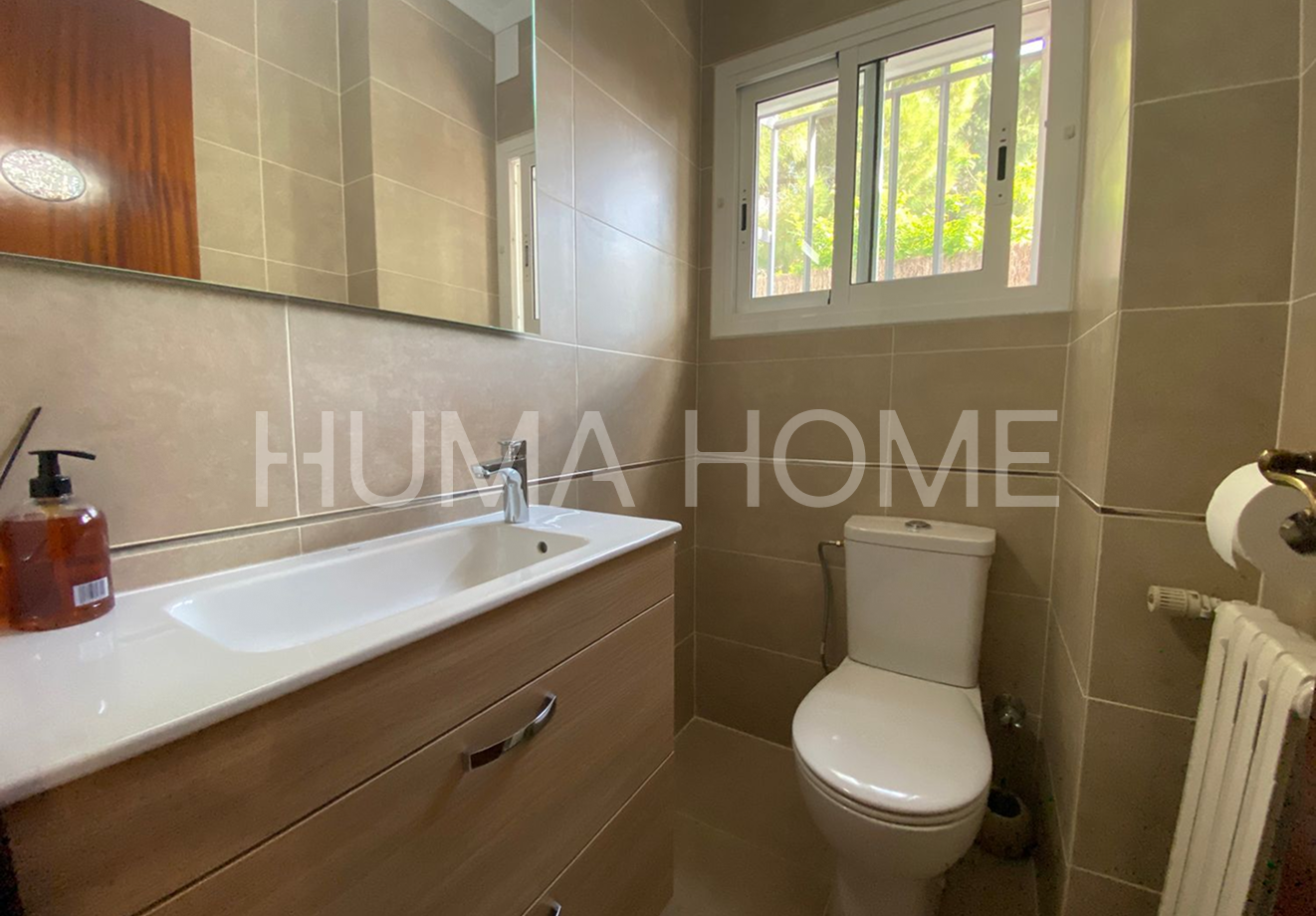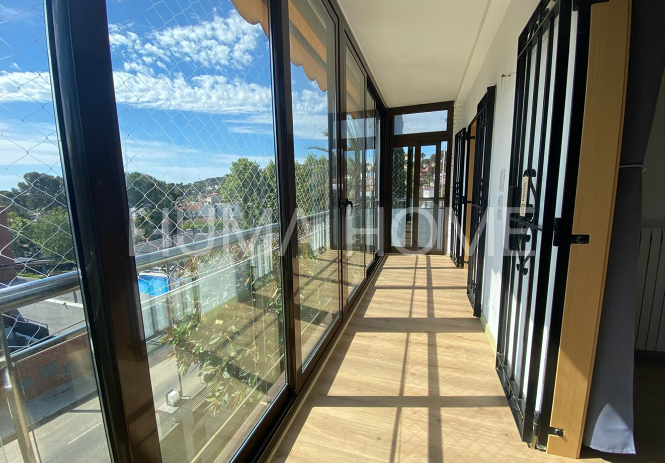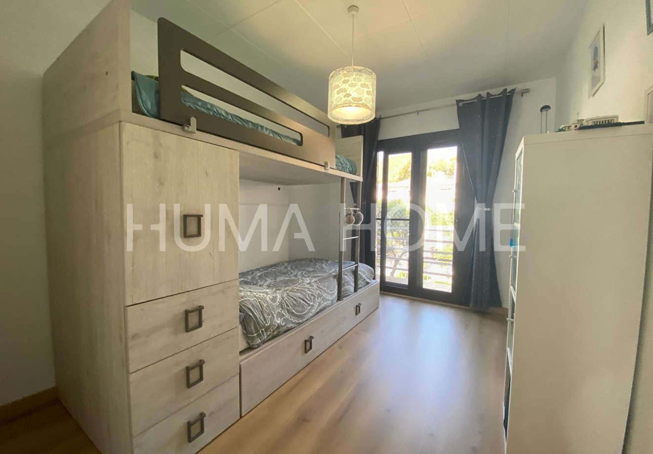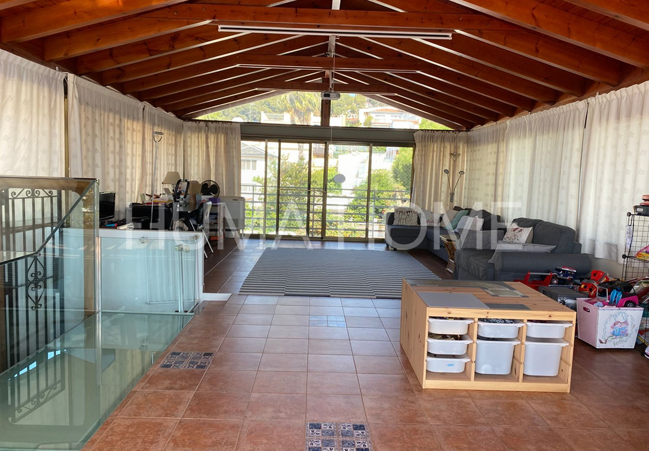 260m² Construïts, Jardí i Vistes al Mar Casa independent de 260m² en parcel·la de 460m² en una de les millors zones de Montemar, Castelldefels. Quatre plantes ben distribuïdes amb jardí cuinat i piscina d'aigua salada reformada recentment. L'habitatge compta amb quatre habitacions dobles, dos banys complets i un lavabo. La planta baixa ofereix saló-menjador amb xemeneia, cuina ampla reformada amb sortida al jardí, zona de barbacoa i piscina. La segona planta té quatre habitacions dobles exteriors, cadascuna amb balcó i dos banys. L'última planta és la joia d'aquesta casa: espai multifuncional molt ampli amb sostre alt de fusta, dos equips de climatització, projector amb pantalla i gran terrassa amb vistes al mar orientada al sud. El jardí té arbres fruiters i zona de mini golf. Garatge per a dos cotxes grans i trasters. Calefacció de gasoil per radiadors, diversos splits de climatització, terres de parquet i gres, finestres d'alumini amb mosquiteres i toldes instal·lats. Ubicació ideal, envoltada de tranquil·litat i natura, a prop del centre de Castelldefels amb tots els serveis i col·legis internacionals. Platja a 10 minuts, Barcelona a 30 minuts.