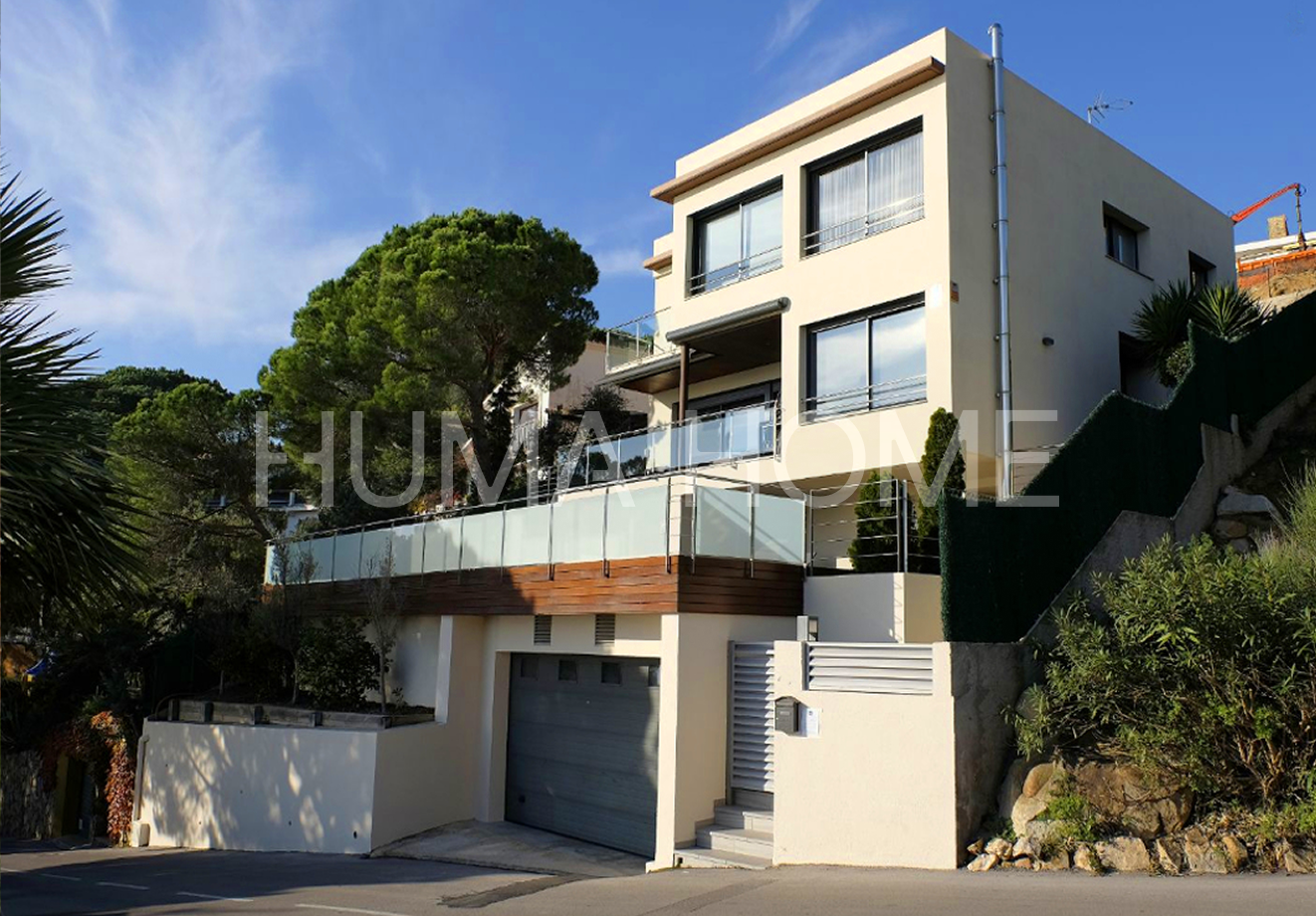 Casa de 298 m² ubicada a la urbanització Cala Canyelles, a només cinc minuts de la platja. Es distribueix en dues plantes, connectades per ascensor i escales, i compta amb cinc dormitoris amb vistes al mar, un d'ells en suite, i quatre banys. La cuina és oberta i està equipada amb electrodomèstics moderns, juntament amb un traster i un ampli saló-menjador que s'obr a una gran terrassa amb vistes panoràmiques al mar. Construïda el 2009, l'habitatge té acabats de qualitat, parquet, armaris encastats, finestres d'alumini i està completament amoblada amb moble de disseny. Disposa de calefacció central i aire condicionat. A l'exterior, la parcel·la de 679 m² ofereix diverses terrasses, zona de piscina, chill-out, solàrium i un garatge a nivell de carrer amb espai per a diversos vehicles.