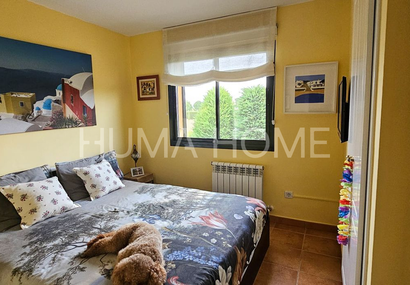 120m² amb Dormitori i Bany a Planta Baixa - Resort PrivatHabitatge unifamiliar llest per entrar a viure al prestigiós Torremirona Golf Resort. Recinte privat amb vigilància 24h, a només 5 minuts a peu de Navata. El que fa única aquesta casa és el seu dormitori doble i bany complet a planta baixa, un luxe difícil de trobar que permet viure sense escaleres.La casa de 120m² en parcel·la de 300m² destaca per la seva lluminositat. La planta baixa compta amb gran saló-menjador amb sortida al jardí, cuina equipada amb osmosi, rentagemega independent i suite accessible. La planta superior ofereix tres dormitoris dobles amples i exteriors amb dos banys complets, un en suite.El jardí privat de 150m² té reg automàtic i dues pèrgoles de fusta, amb accés directe a la zona comunitària que inclou jardins cuidats i piscina d'aigua salada. Calefacció a gas i aire acondicionat, descalcificador, alarma amb càmeres i pany intel·ligent.El resort compta amb hotel 5*, spa, gimnàs, tennis, pàdel i un dels millors camps de golf d'Espanya. A 10 minuts de l'AVE Figueres-Vilafant, 25 minuts de platges de la Costa Brava i 50km de França.
