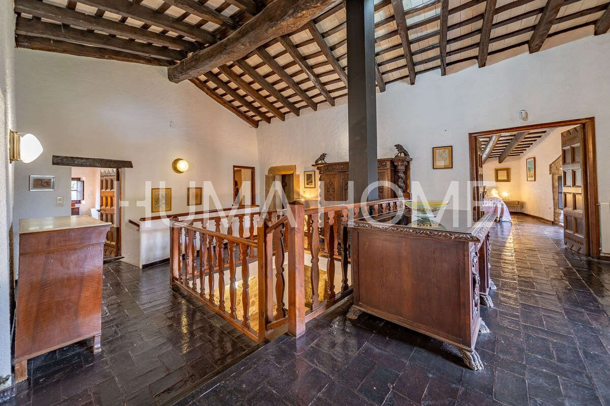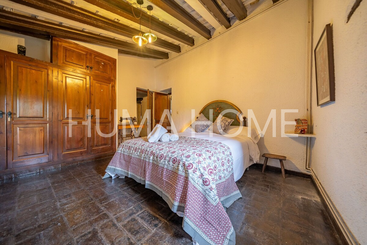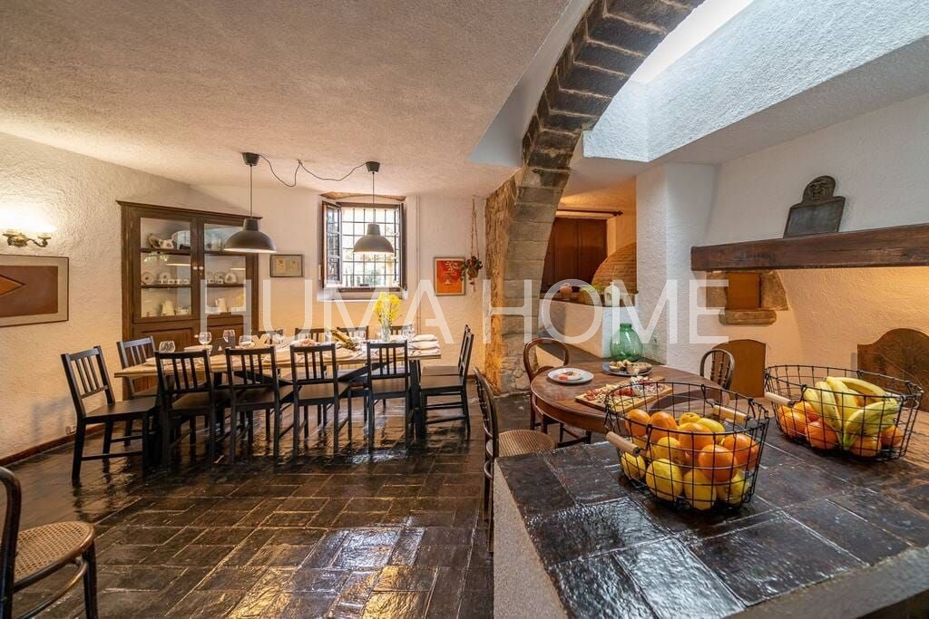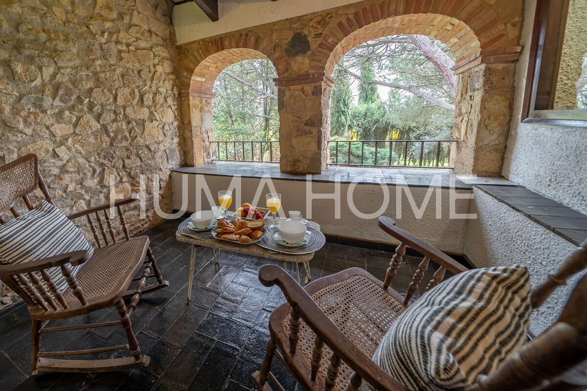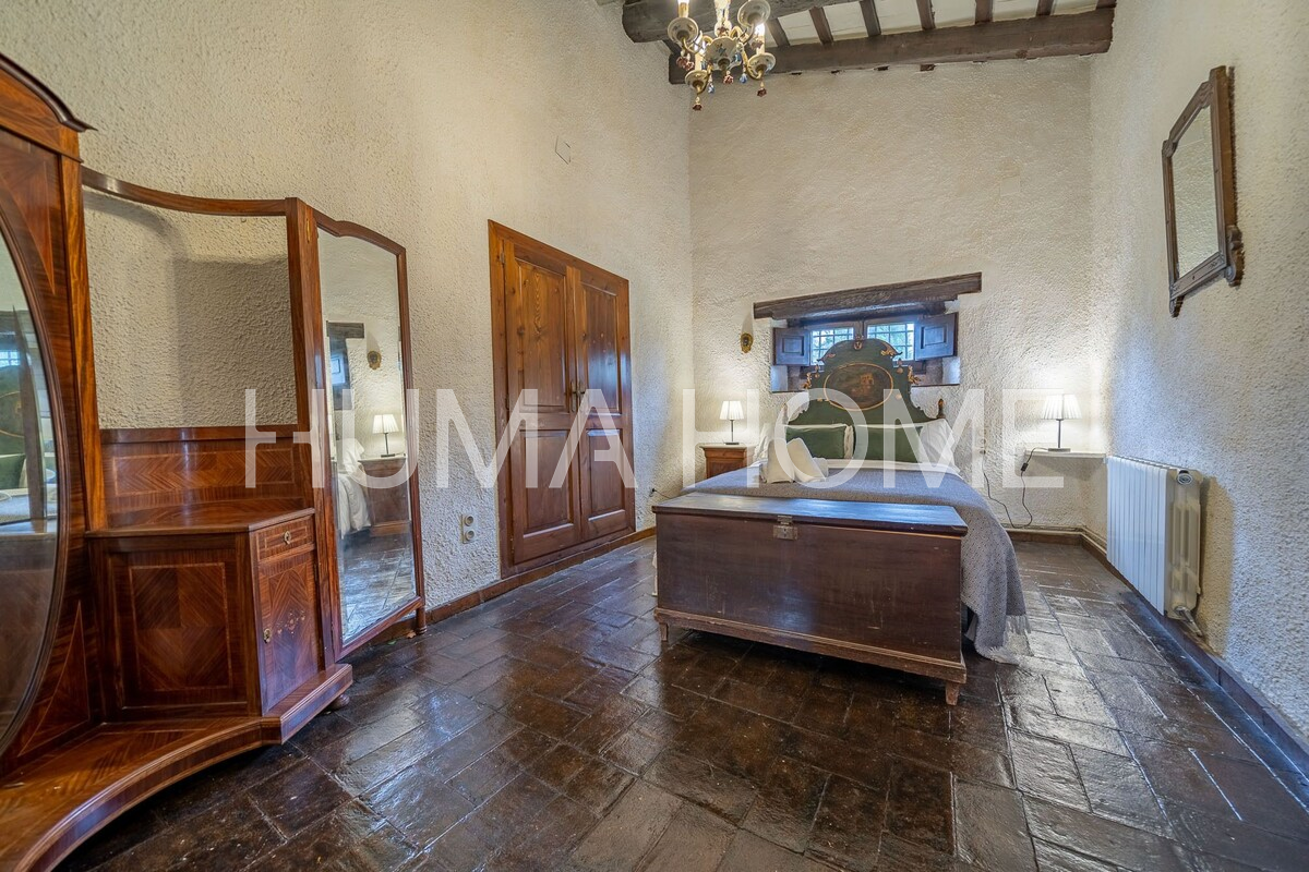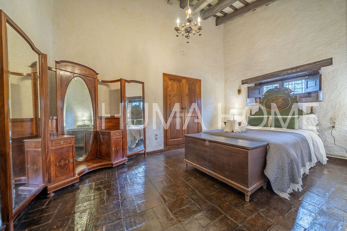 Mas Històric del Segle XVII amb llicència turística activa — Llagostera, Girona Autèntic mas de l'any 1627, catalogat oficialment pel seu valor arquitectònic, històric i artístic. Situat a les afores de Llagostera, envoltat de natura i amb vistes obertes al camp, aquesta propietat ofereix privacitat absoluta i un ambient de pau difícil de trobar. El mas compta a més amb llicència turística activa, la qual cosa el converteix en una excel·lent oportunitat tant per a ús familiar com per a explotació turística d'alt nivell. El mas es troba a només 20 minuts de Girona, 15 minuts de Platja d'Aro i 1 hora de Barcelona. Està construït sobre una finca rústica majoritàriament plana i ajardinada de 1,4 hectàrees (14.000m²). L'edificació principal té 600m² distribuïts en 2 plantes, més una construcció auxiliar de 40m² i un porxo cobert de 80m². L'estructura conserva elements originals com bigues de fusta, murs de pedra, ferreria del segle XVIII, arcs gòtics, forn de pa, torre medieval i detalls defensius com espitlleres. La planta baixa inclou ampli menjador amb xemeneia i forn antic, cuina, sala amb volta de canó, espai central amb xemeneia, traster, bany complet de cortesia, una suite amb bany privat i garatge gran. La planta superior compta amb dues suites amb bany complet, terrassa, tres habitacions dobles, una habitació individual, zona de lectura, bany adicional i bugaderia amb sortida a terrassa exterior. També hi ha una azotea transitable de 2,5 x 5m amb accés al jardí. L'exterior inclou terrassa de 22 x 5m davant la casa, 5.000m² de jardí amb oliveres centenàries, piscina de 6 x 12m, estany de 3,5 x 2,5m, zona de barbacoa, porxo cobert de 80m², annex a la barbacoa, construcció adicional de 40m² i pou artesà actiu de 25 metres de profunditat. La propietat té electricitat, calefacció, subministrament d'aigua propi, wifi i està correctament inscrita al Registre de la Propietat amb referència cadastral. Inclou també una petita parcel·la adicional de 96m² registrada sota una altra finca matriu. Capacitat per a 14 persones.