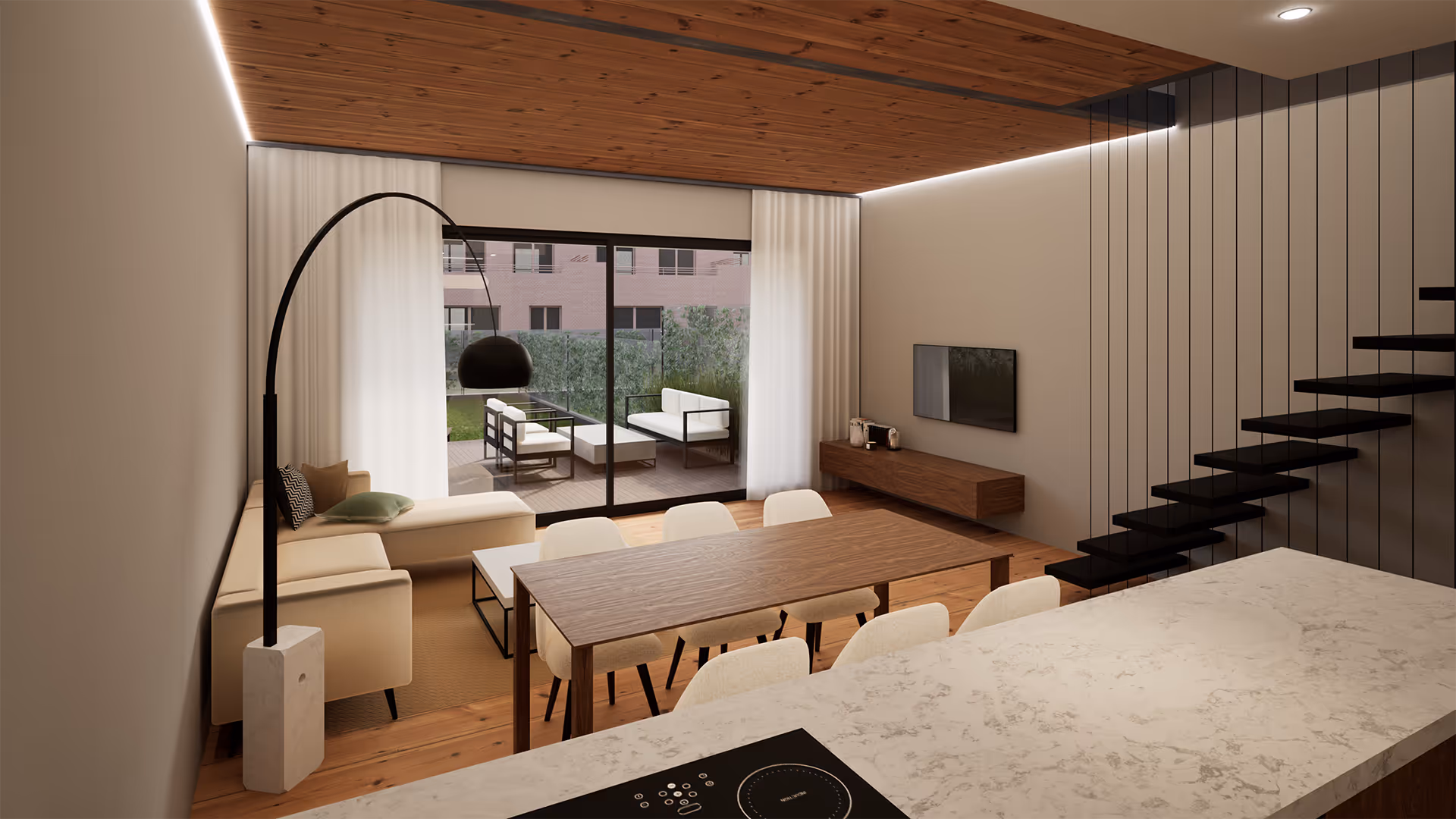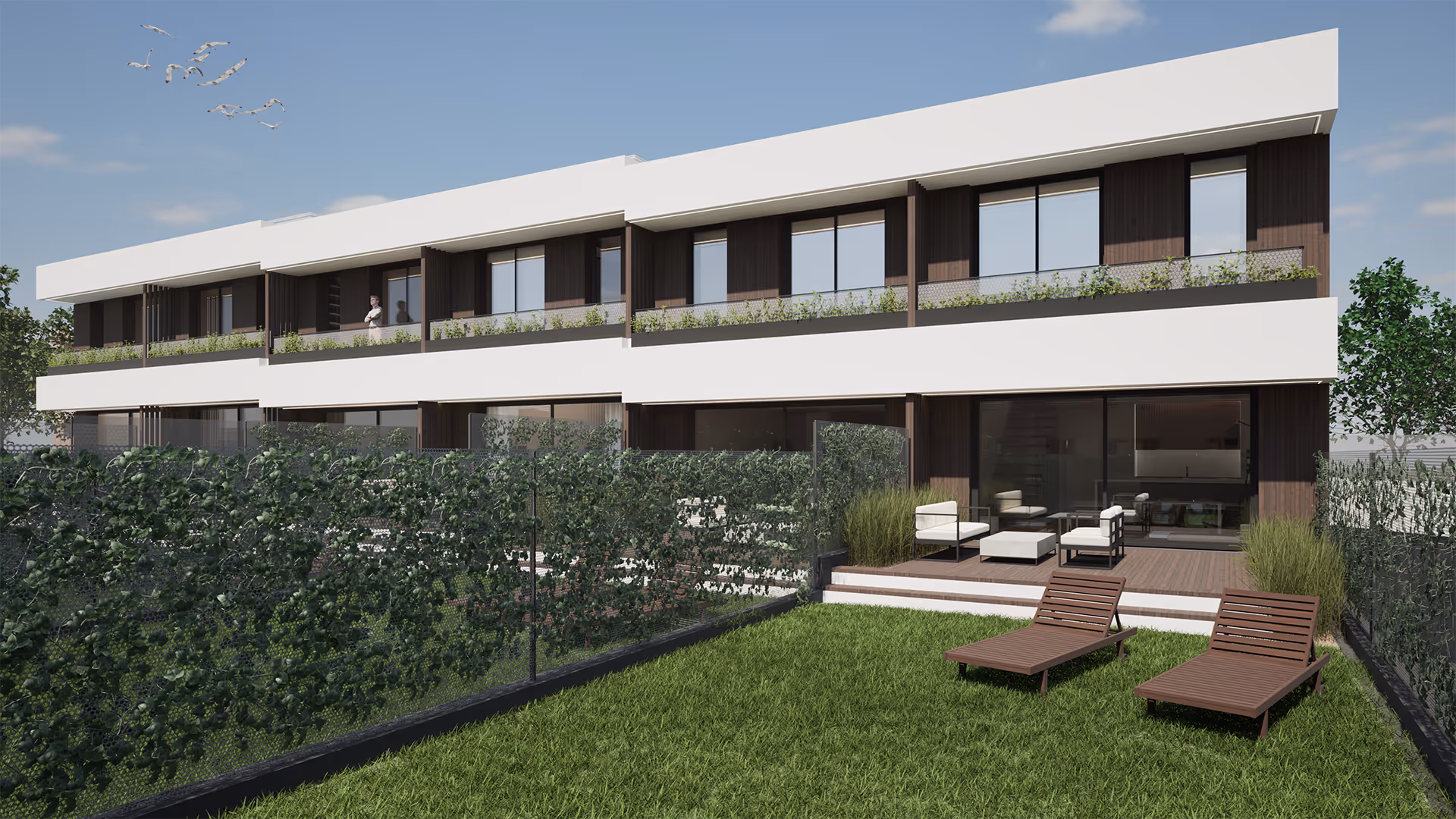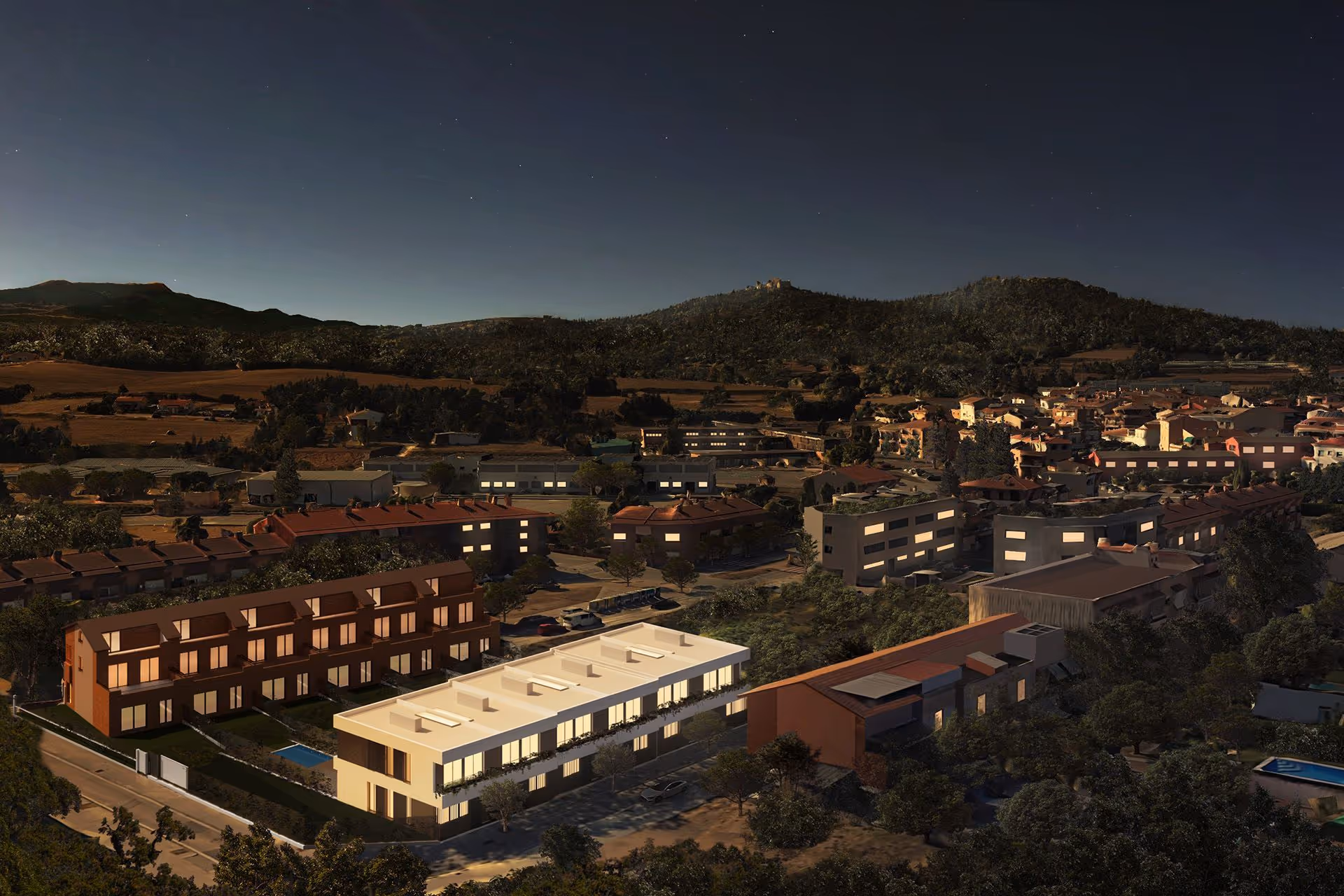 Scala Townhouses is an exclusive development of six modern semi-detached homes located in Palafolls, Catalonia. Each home features private outdoor areas perfect for a garden, pool, or barbecue space, along with covered and uncovered terraces. All units come with a private garage for two cars and a storage room. The total built area is approximately 169.28 m², with a 31.49 m² garage, 5.23 m² covered terrace, 18.47 m² uncovered terrace, and gardens ranging from 50 m² to 93 m². Designed by Vilalta Studio, these homes feature high-quality hardwood floors and ceilings with excellent sound insulation to create a warm, cozy atmosphere. Kitchens and bathrooms are crafted with great attention to convenience, practicality, and visual appeal. Prices start from €529,500, and four out of six homes remain available. Situated in Palafolls, just nine minutes from Blanes and around 15 minutes from beaches like Cala Treumal, Scala offers the tranquility of a natural setting with strong connections: train, road access, local amenities, nature, and proximity to both Barcelona and Girona.