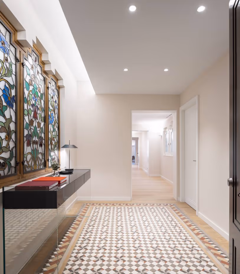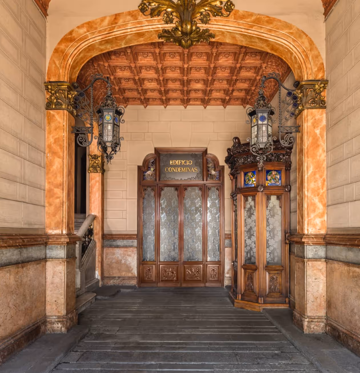 Casa Condeminas is an elegant Art Nouveau residential building located at 11 Passeig de Colom, Barcelona, with views over the sea and very close to La Rambla and the Gothic Quarter. Originally conceived in 1860 by Felip Ubach, the building was redesigned in the early 20th century by architect Josep Pujol i Brull. The restoration, completed in 2023, preserves and highlights original elements such as wrought-iron work, carved woodwork, hydraulic tile floors, and stained-glass windows. The redevelopment converts the property into 20 apartments ranging from 90 to 215 sqm, all fully adapted to modern needs while keeping the historic charm and craftsmanship.
