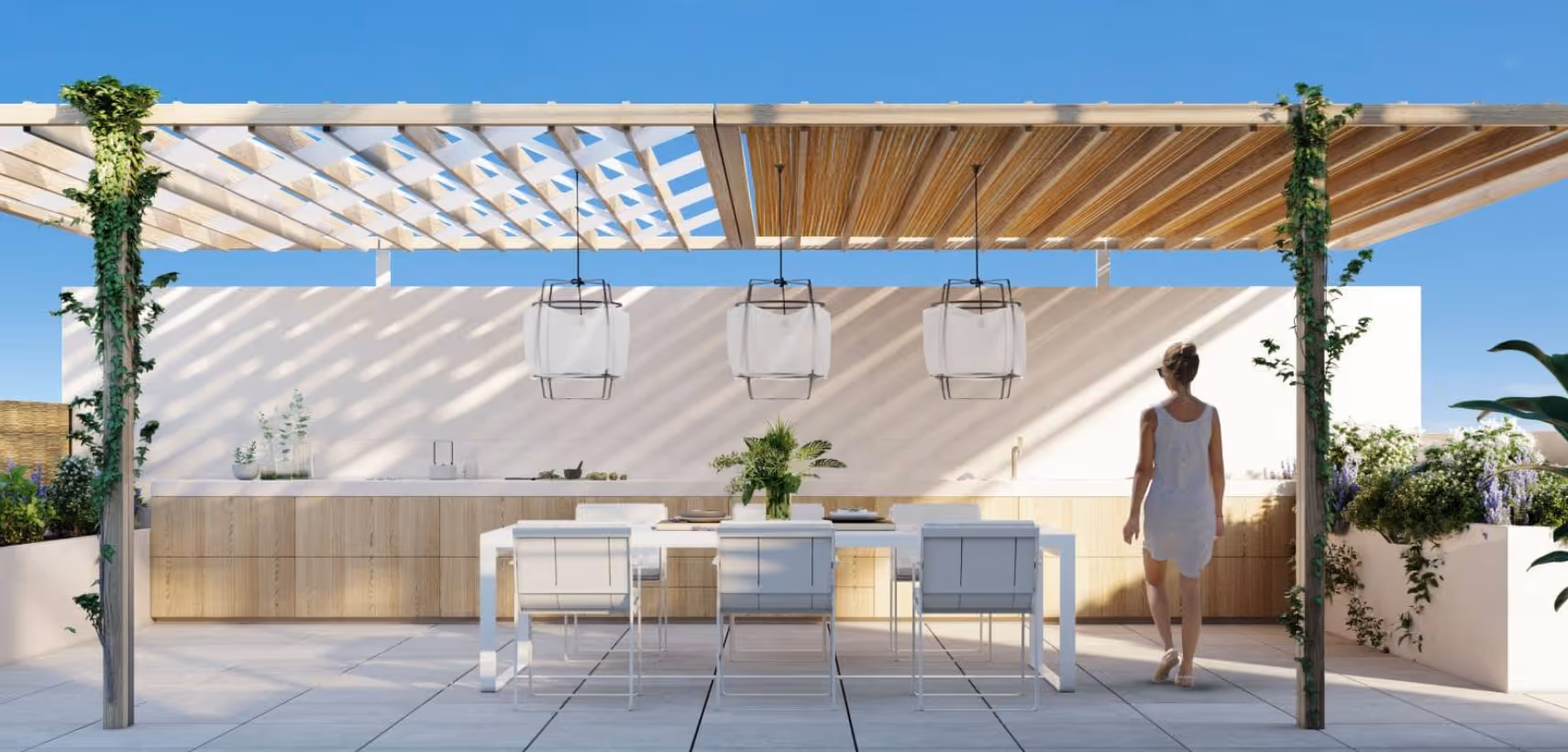 Amura Residences is a development of 38 apartments located in the Maresme region, just 200 meters from the sea and approximately a 15-minute walk from the main beach. The project is designed by Vilalta Studio, under the direction of architect Xavier Vilalta, known for his focus on sustainable, award-winning architecture. The building offers exceptional sea views, combining modern aesthetics with functional design. Its façade features elegant curves and materials such as wood and metal, along with movable wooden panels that allow residents to regulate light and shade — providing both comfort and energy efficiency. The interiors are designed to promote well-being and harmony: wooden ceilings, floor-to-ceiling windows that fill the spaces with natural light, and open-plan layouts connecting the living room, dining area, and kitchen to maximize spaciousness. The bedrooms are conceived as tranquil retreats, with clean lines, natural materials, and optimal orientation. The community areas include a modern lobby with secure parcel lockers, a fully equipped gym on the ground floor, a rooftop infinity pool with stunning sea views, a children’s play area, a green relaxation garden, and an outdoor calisthenics zone. The surrounding environment is truly privileged: Mataró offers excellent public transport connections, close proximity to health services (such as Mataró Hospital), educational institutions (like Escola Pia Santa Anna and Tecnocampus), shopping centers like Mataró Parc, local markets, restaurants, and leisure options. All this is just 30 minutes by car from Barcelona, while still enjoying the peace and lifestyle of living by the sea.