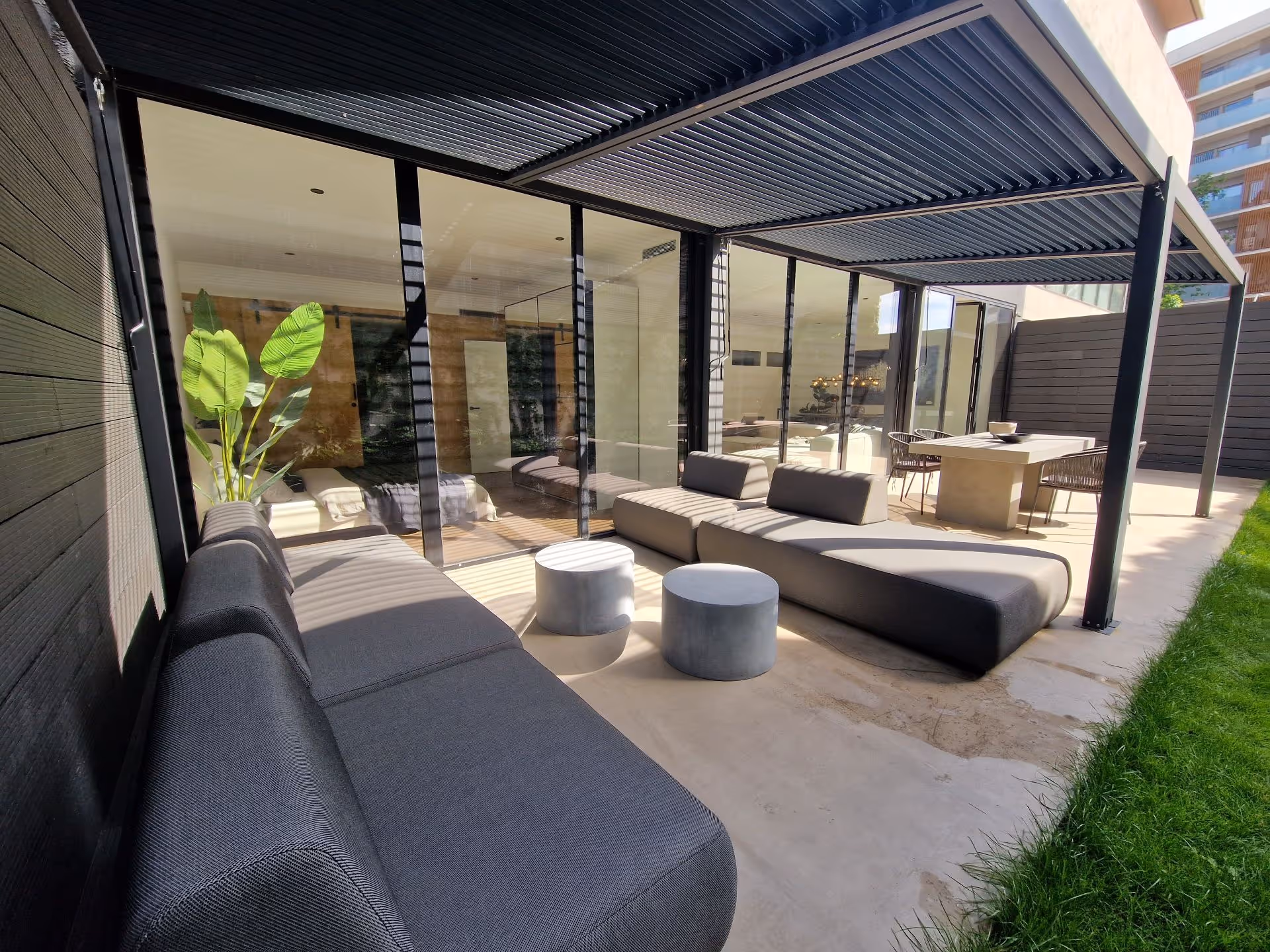 Designer Loft with Large Terrace — L'Orfebreria, Poblenou 110m² + 87m² Private Terrace in Renovated Industrial Building Exclusive 110m² loft with spectacular 87m² private terrace in L'Orfebreria, prestigious residential project resulting from the transformation of a former jewelry workshop in the heart of Poblenou, 22@ district. The architecture respects the original industrial character with high ceilings, exposed structural elements, and large windows flooding the space with natural light. The interior combines noble materials like wood, concrete, and metal, creating a contemporary minimalist aesthetic with a warm, sophisticated atmosphere. The loft features 2 bright bedrooms with built-in wardrobes, 2 designer bathrooms with high-end finishes, and an open kitchen integrated into the living room with direct access to the spacious terrace, perfect for a lounge area, outdoor dining, or urban garden. Hot/cold air conditioning and smart systems complete the comfort.