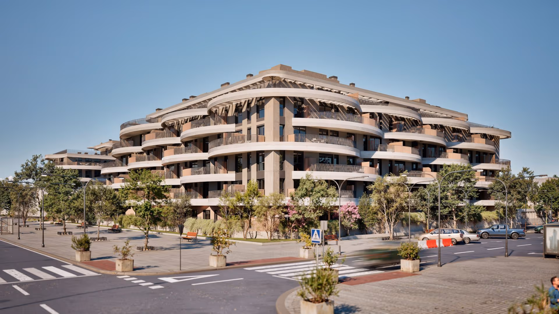 The homes at Bulevar 360 are designed with high-quality finishes and a strong commitment to sustainability. They hold an A energy rating, ensuring much lower energy consumption than average thanks to features such as lightweight façades with excellent insulation, thermal-break carpentry, Climalit glazing, a high-efficiency aerothermal system for hot water, and photovoltaic solar panels. Terraces are delivered fully finished and ready for use, while interiors include kitchens equipped with modern appliances and layouts that can be either open or closed depending on the typology, adapting to different lifestyles. The interior floors are large-format porcelain tiles that continue seamlessly onto the exterior areas to create a sense of spatial flow. In the communal spaces, every detail is carefully considered: contemporary materials in lobbies and shared areas, low-consumption elevators, fully LED lighting, and pre-installation for electric-vehicle charging in the garage. The overall structure of the complex prioritizes environmental responsibility, with a pneumatic waste-collection system, low-consumption landscaping, and architectural solutions designed to minimise environmental impact, all supported by the BREEAM certification approach. Bulevar 360 is an innovative residential complex located in the new Cortijo Merino district in Málaga. Comprising 165 homes with 1 to 4 bedrooms, the project has been designed to offer a new lifestyle in the city, where sustainability, energy efficiency, and comfort are the main pillars. All homes feature spacious, bright terraces that enhance the connection with the outdoors, and each unit includes a parking space and a storage room. The communal areas offer extensive green spaces, children’s play areas, swimming pools, and dedicated zones for sports and wellbeing, such as a “Flex Zone” for yoga and calisthenics. The urban surroundings benefit from an excellent location, very close to the university, the Andalusian Technology Park, business areas, the airport, and the Conference & Exhibition Centre. This makes Bulevar 360 a perfectly connected yet peaceful enclave, designed to offer spaces for relaxation, social life, and a balanced way of living.