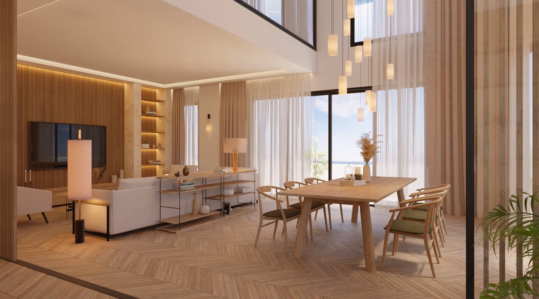 The homes feature high-end finishes, open layouts, and materials selected to ensure comfort and long-lasting quality. Exterior joinery offers excellent thermal and acoustic insulation, complemented by large floor-to-ceiling windows and interior finishes in wood, ceramic, and other premium materials.