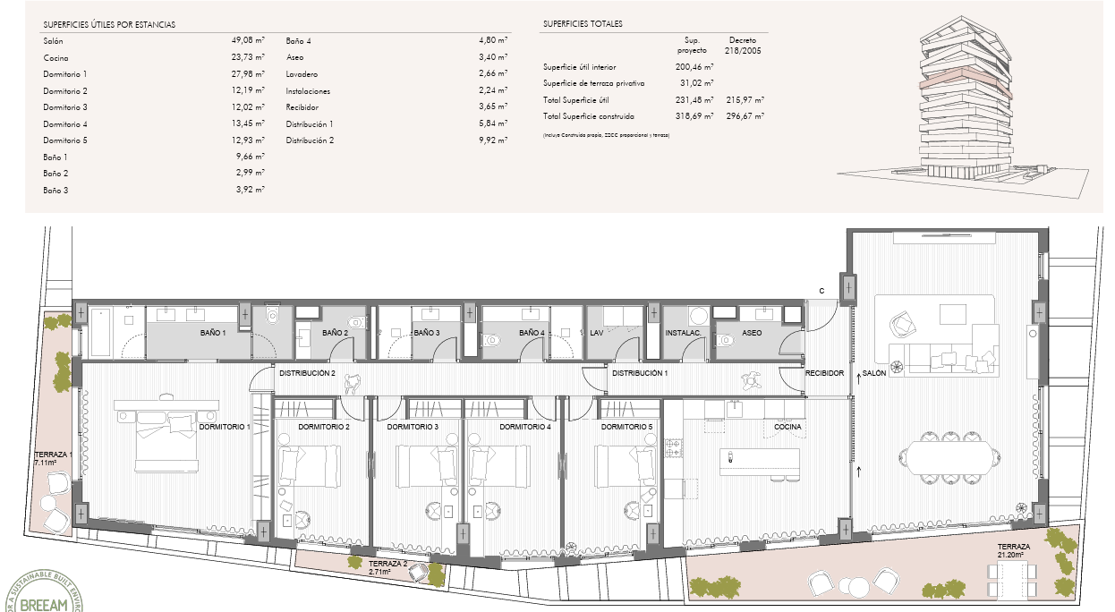 Unidad con 5 dormitorios, 5 baños, 319 m² de área construida.