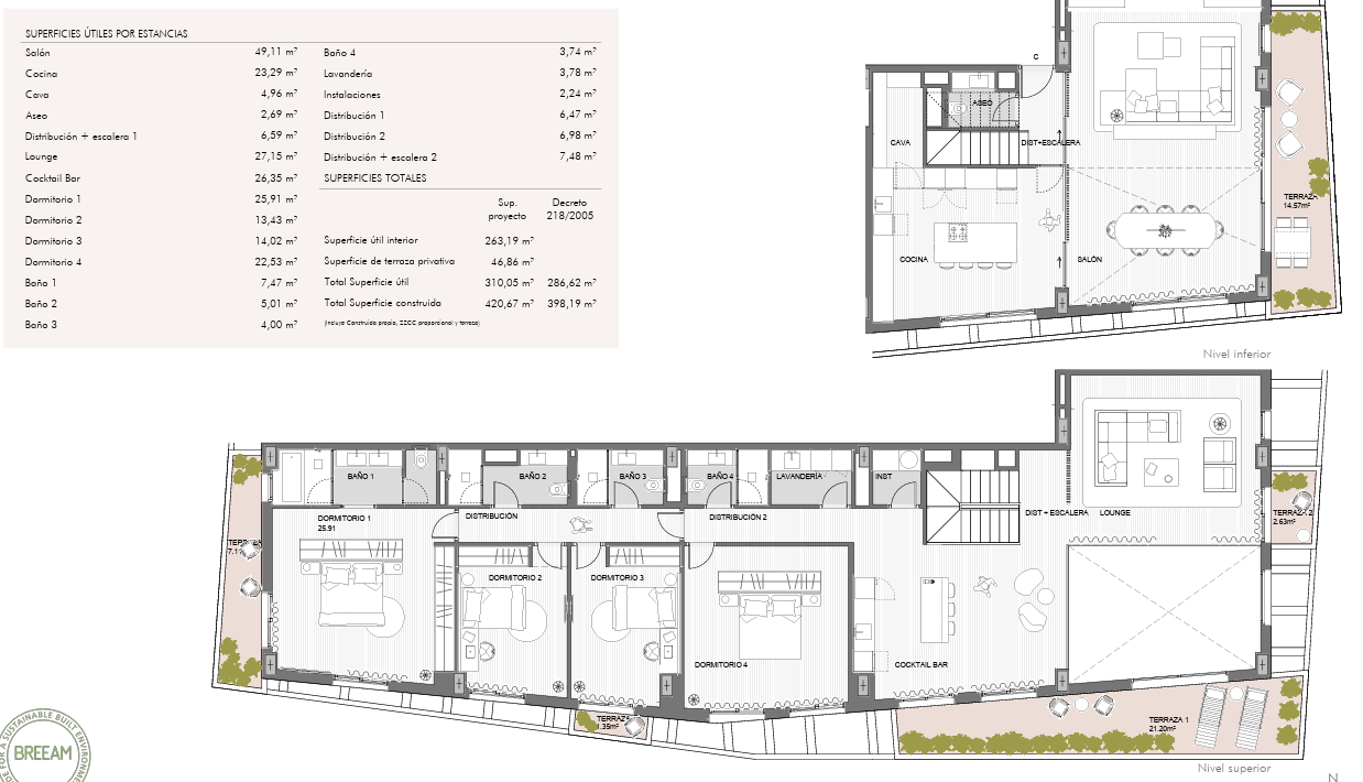 Unidad con 6 recámaras, 4 baños, 421 m² de área construida.