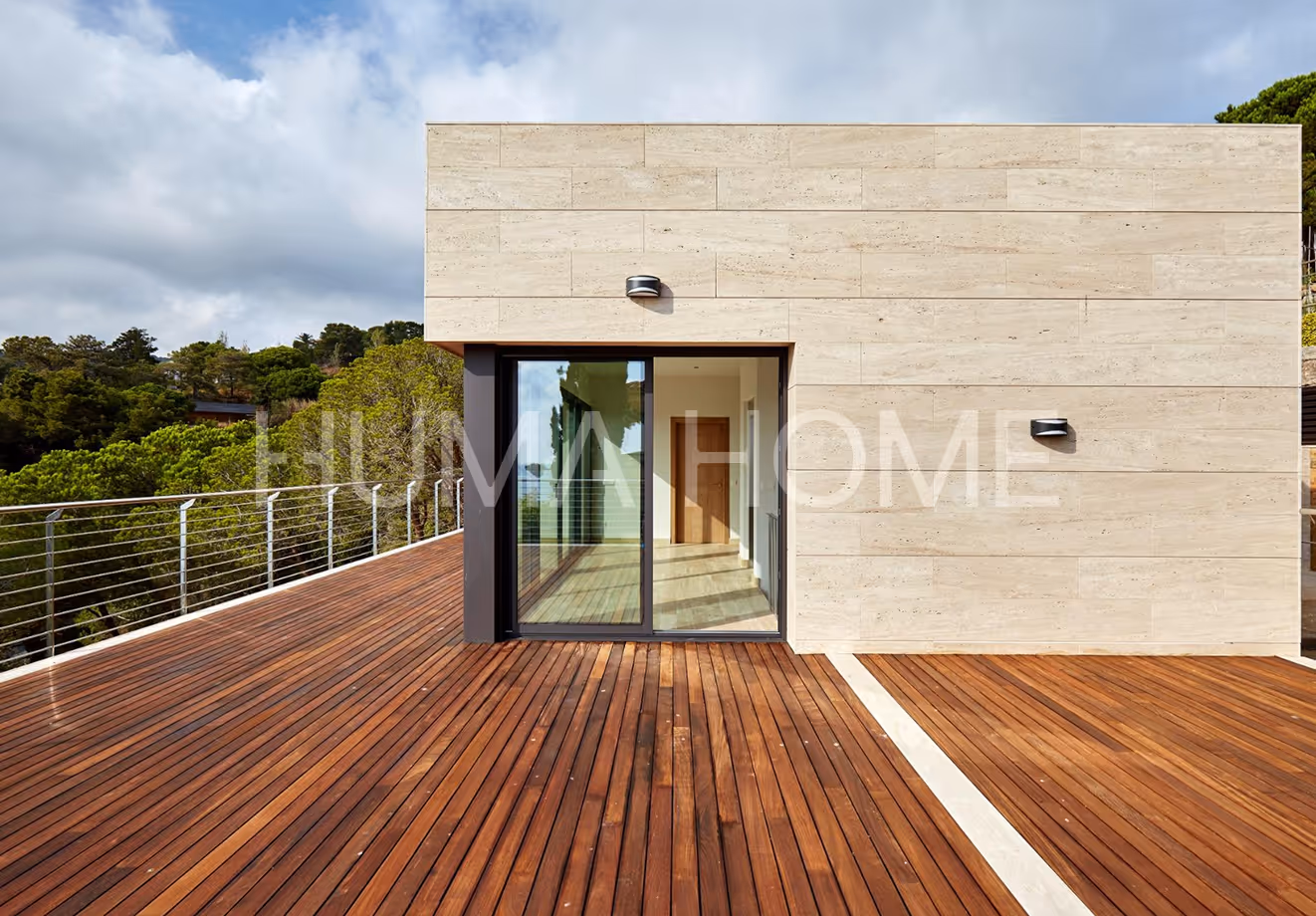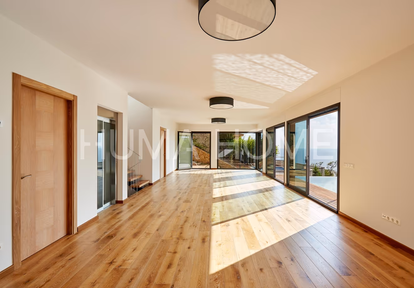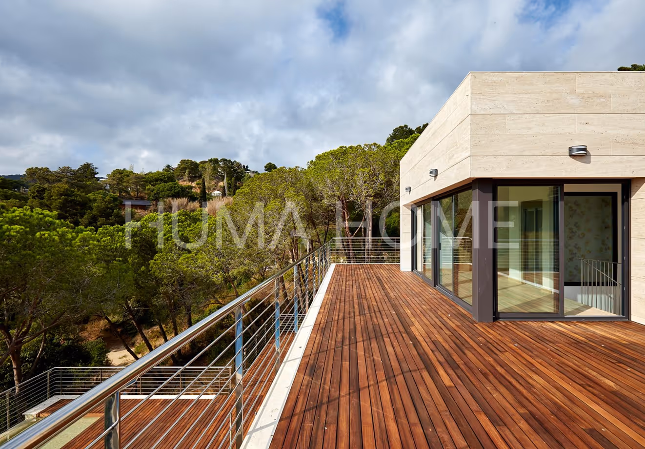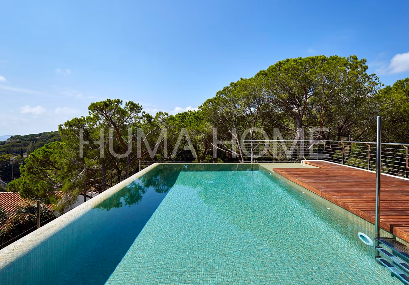 This newly built villa is located in Cala Canyelles, close to the center of Lloret de Mar and the beach. The house is spread over three floors, connected by a glass-door elevator.