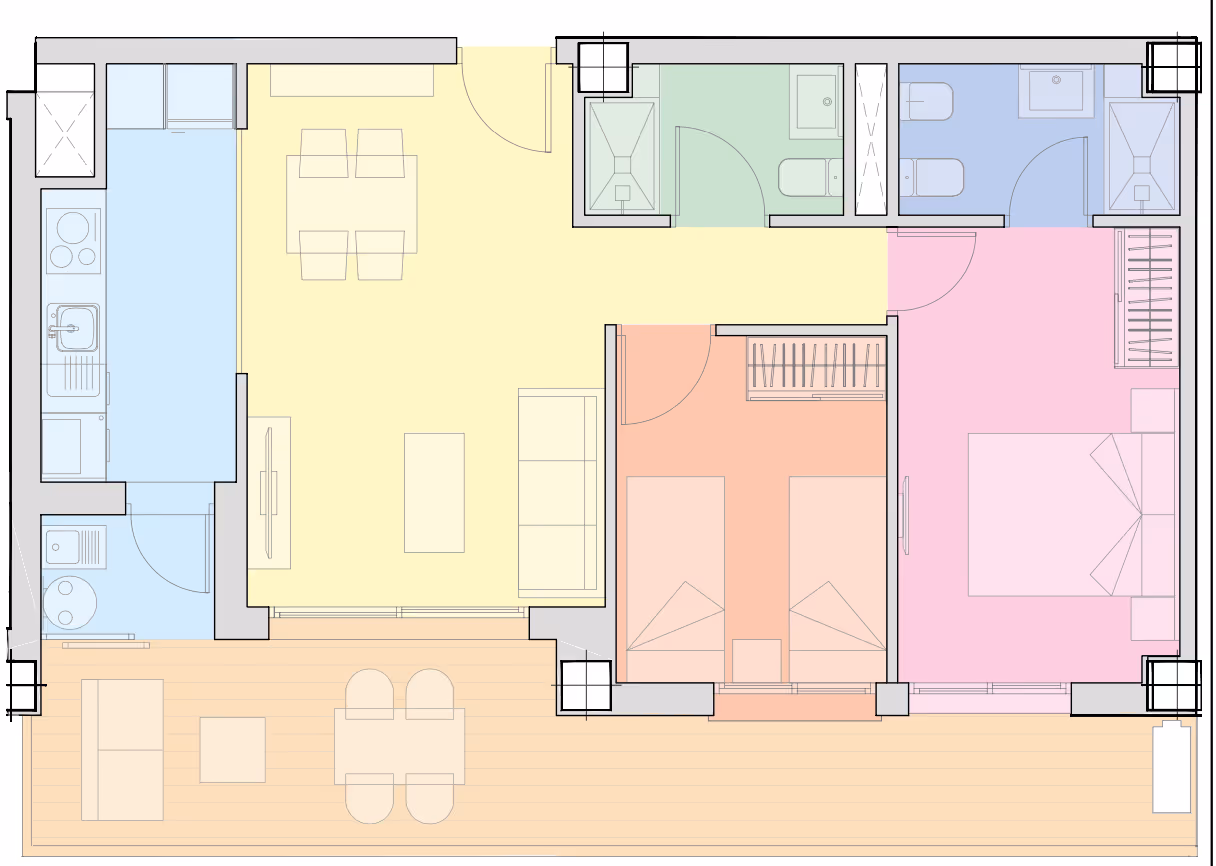 This unit has 3 bedrooms and 2 bathrooms. It includes a built area of 95 m², a usable area of 75 m².