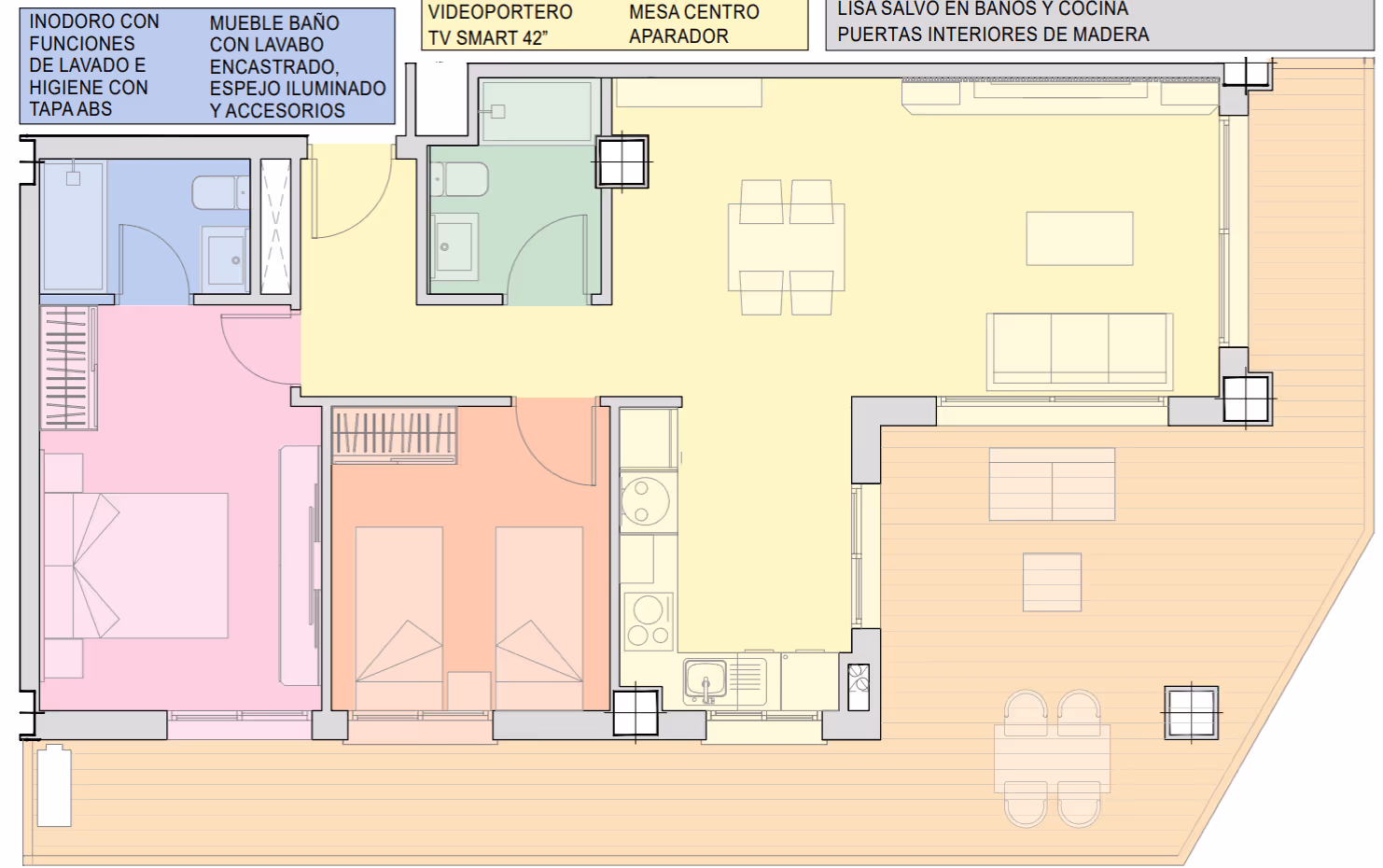 Unit with 2 bedrooms and 2 bathrooms. Built area 74 m²; Usable area 110 m².