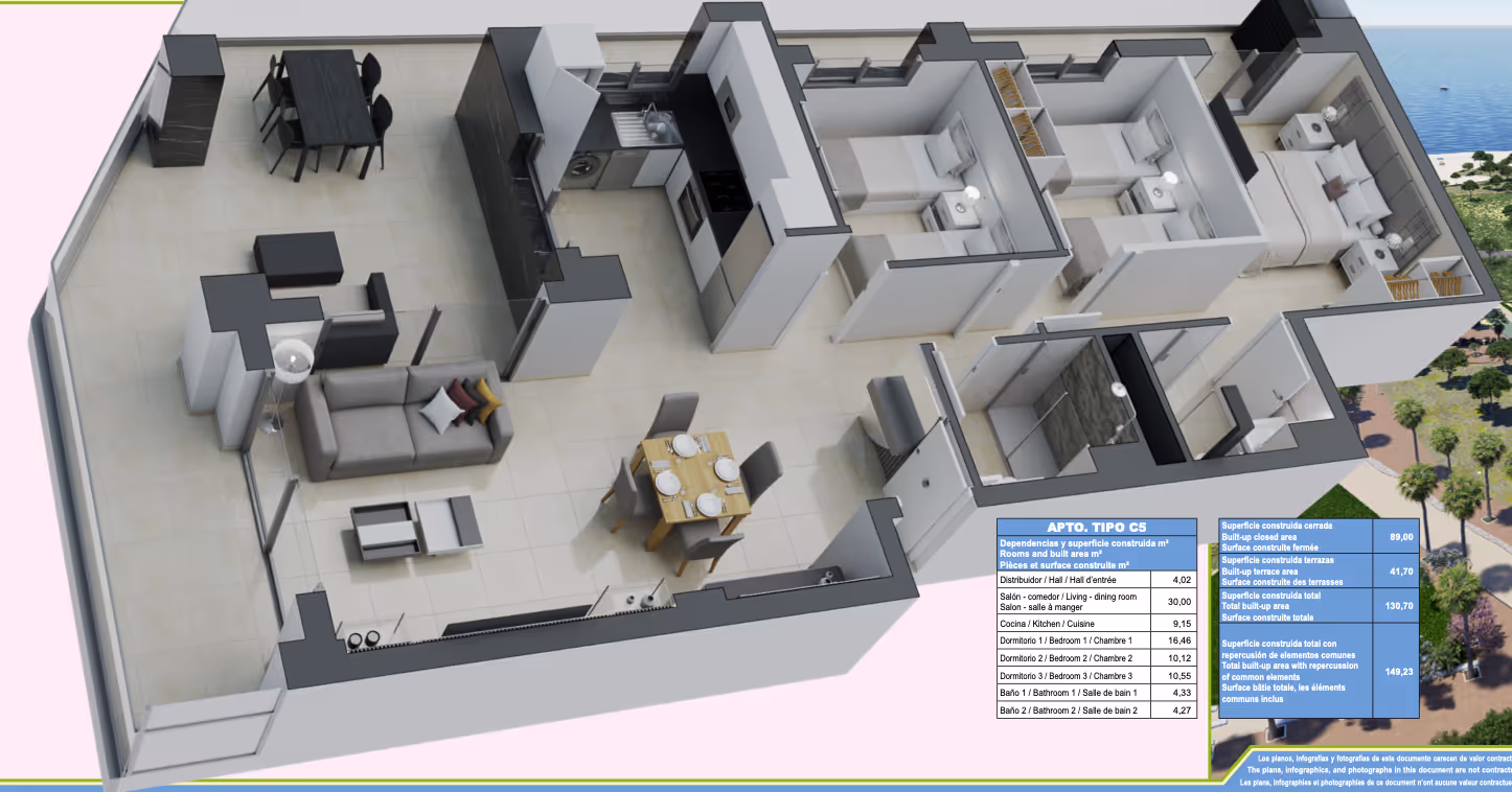 Unit with 3 bedrooms and 2 bathrooms. Built area 131 m²; Usable area 89 m².