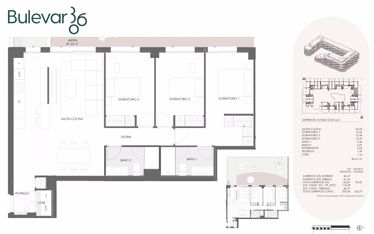 This unit has 3 bedrooms and 2 bathrooms. It includes a built area of 203 m².