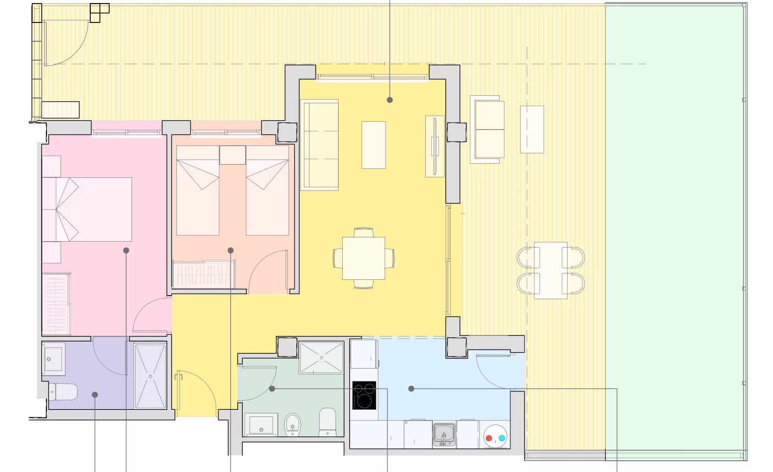 The layout is organized around the main living areas and private rooms.