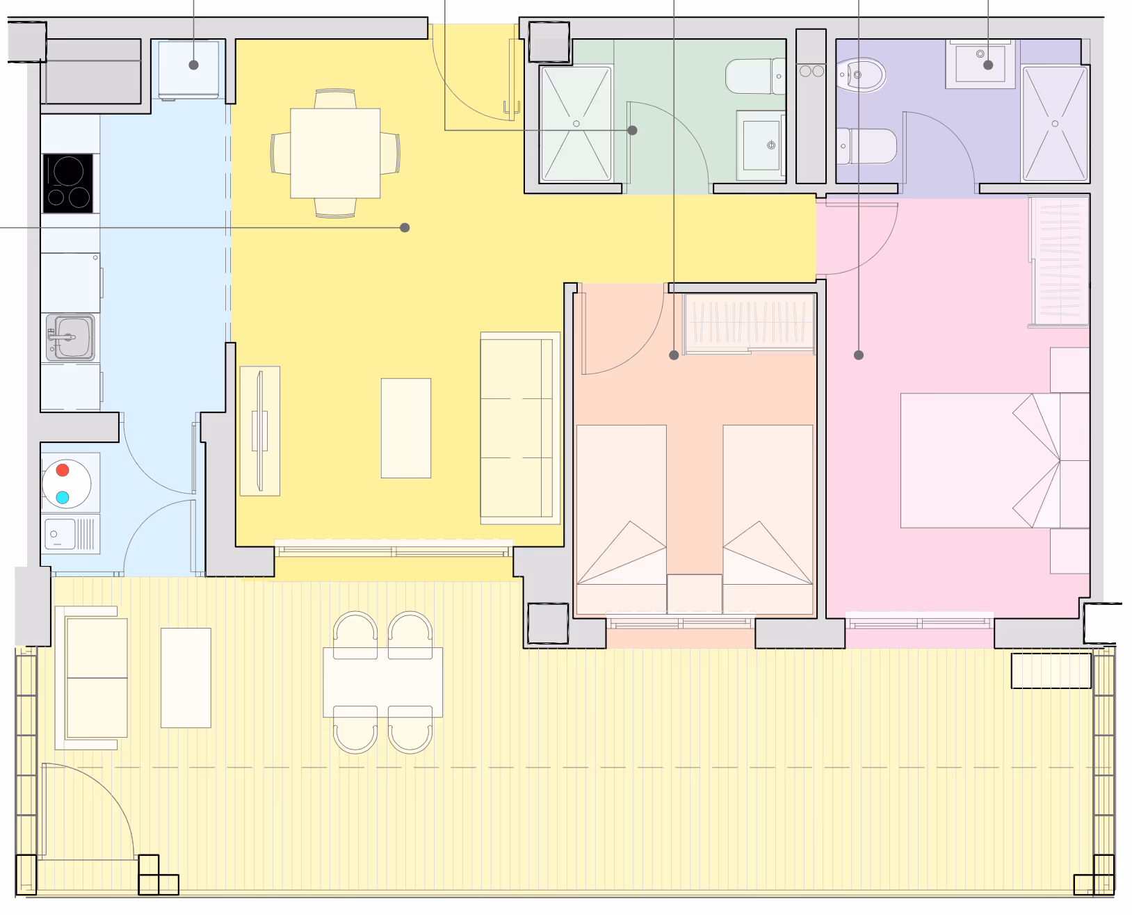 This unit has 2 bedrooms and 2 bathrooms. It includes a built area of 96 m², a usable area of 63 m².