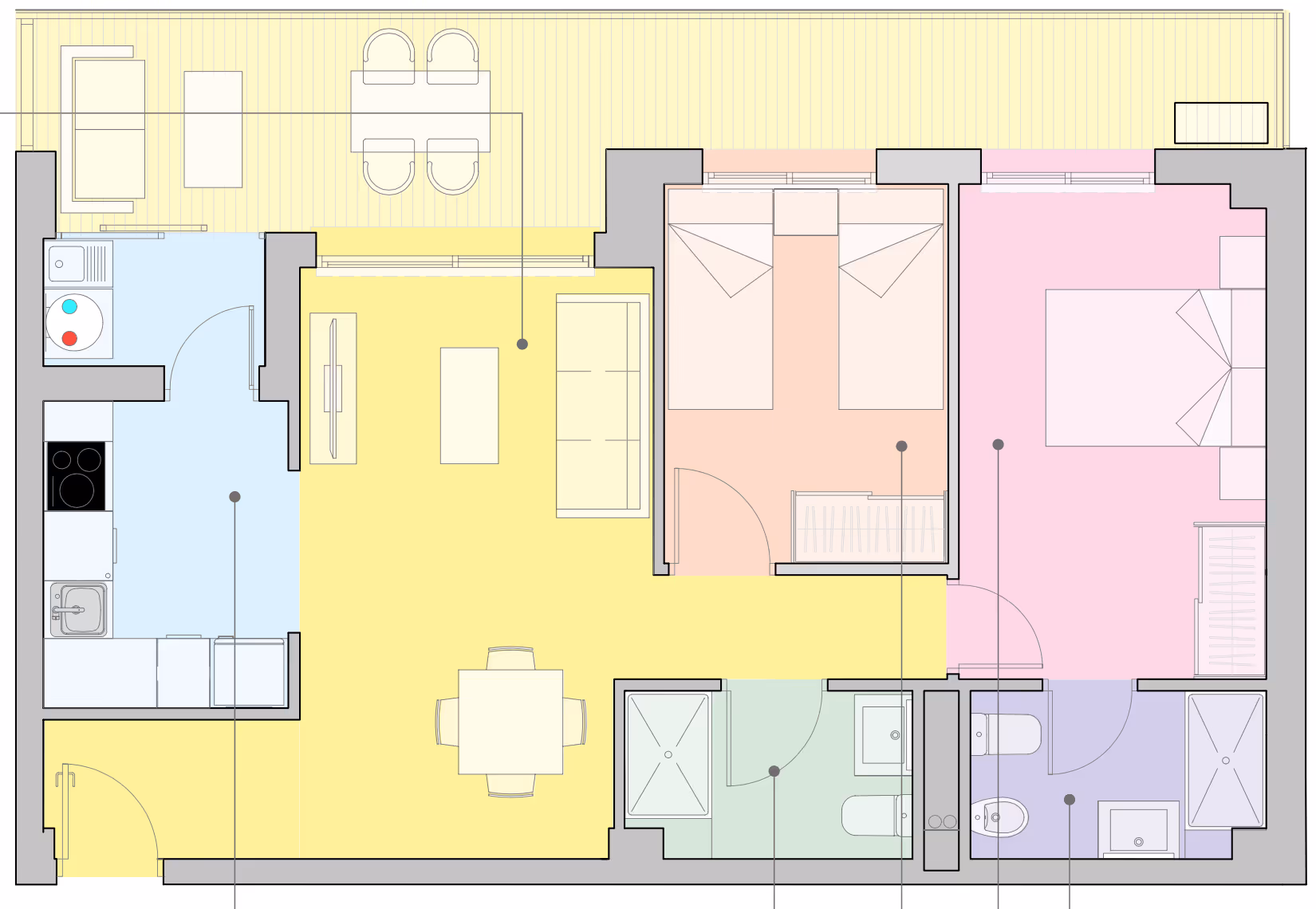 This unit has 2 bedrooms and 2 bathrooms. It includes a built area of 82 m², a usable area of 63 m².
