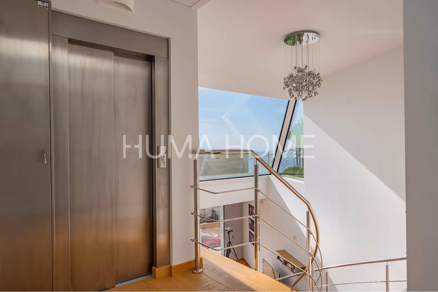 The area is quiet and residential, with easy access to shops, schools, and other daily services. The property offers open views of the sea and the mountains and is arranged over several levels.