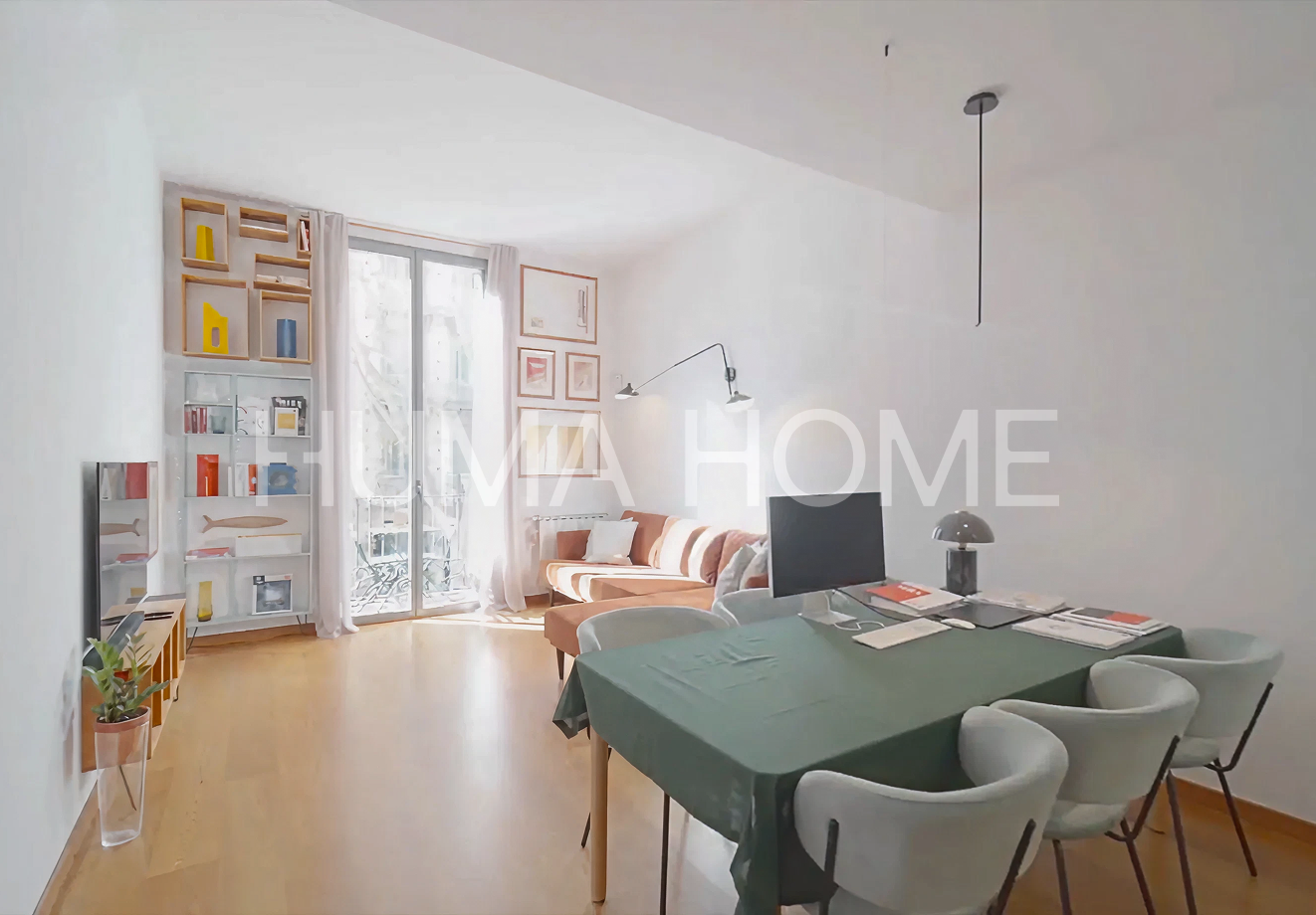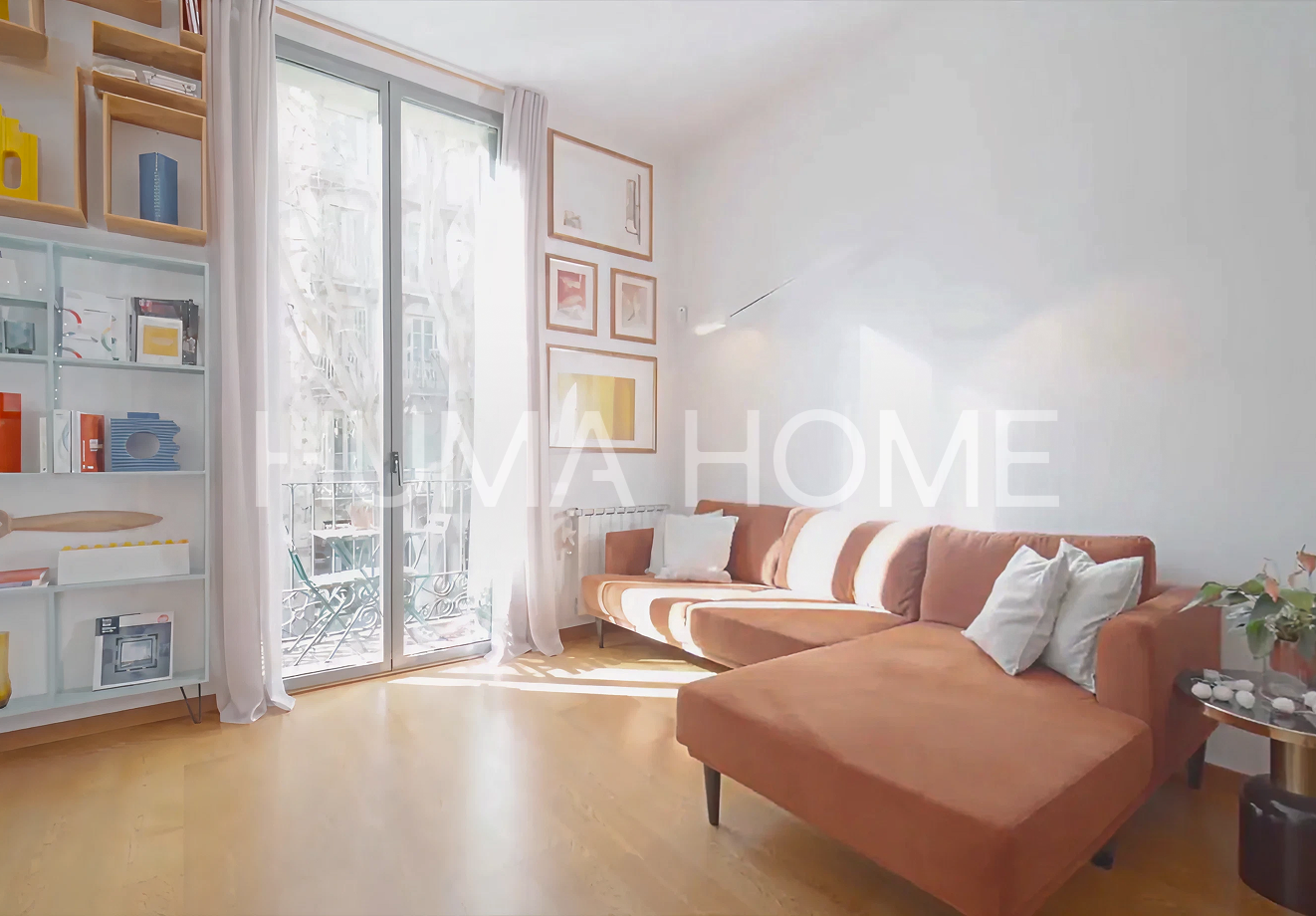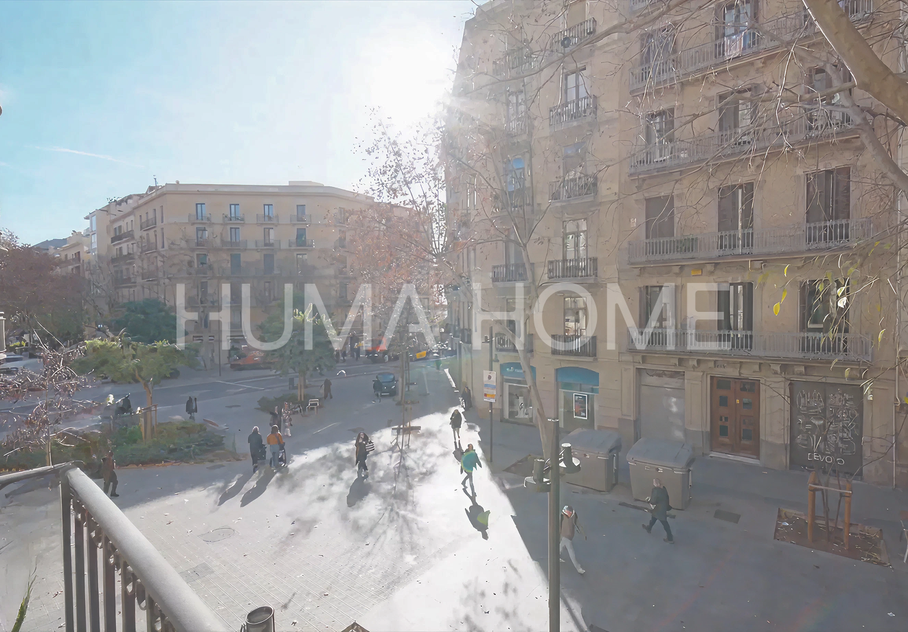 Semi-new 2010 apartment resulting from comprehensive rehabilitation of a representative 1890 building located in the heart of Eixample. The 100m² built property is characterized by its views of the beautiful pedestrian Girona street and southwest orientation providing sun and abundant natural light. The layout clearly differentiates day and night areas. Upon entering, an entrance hall leads to both environments. The day area features an open kitchen to a spacious living room with natural light and large window with balcony facing the pedestrian street. The night area houses bedrooms facing the quiet inner courtyard, offering a serene and silent environment. High ceilings at different heights stand out, with rooms exceeding 4 meters. The building has all current technology: fire protection system, electricity and plumbing according to current regulations, ducted air conditioning, double walls with thermal and acoustic insulation, double-glazed carpentry with thermal bridge break. The home includes an interior patio with wooden decking for plants and flowers. Individual gas boiler heating and spacious modern 6-person elevator. Building hall with marble mosaics and Venetian stucco walls. Being recently comprehensively rehabilitated, it doesn't need technical inspection until 2060 and there are no community assessments planned.