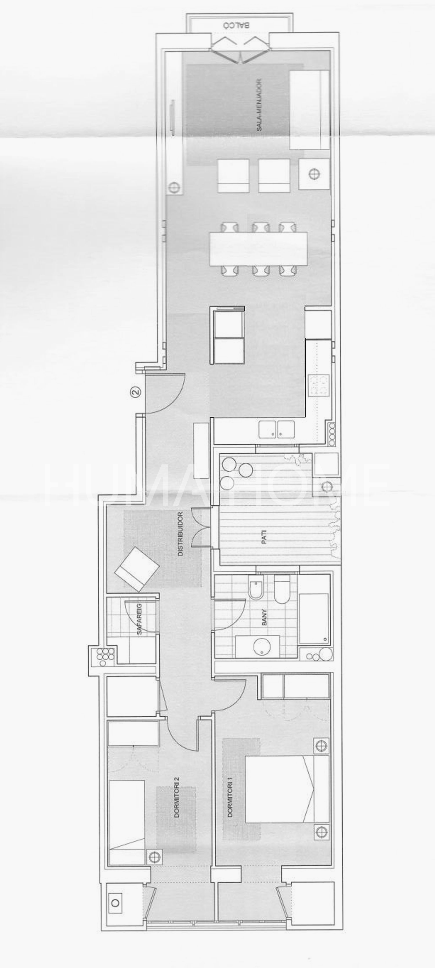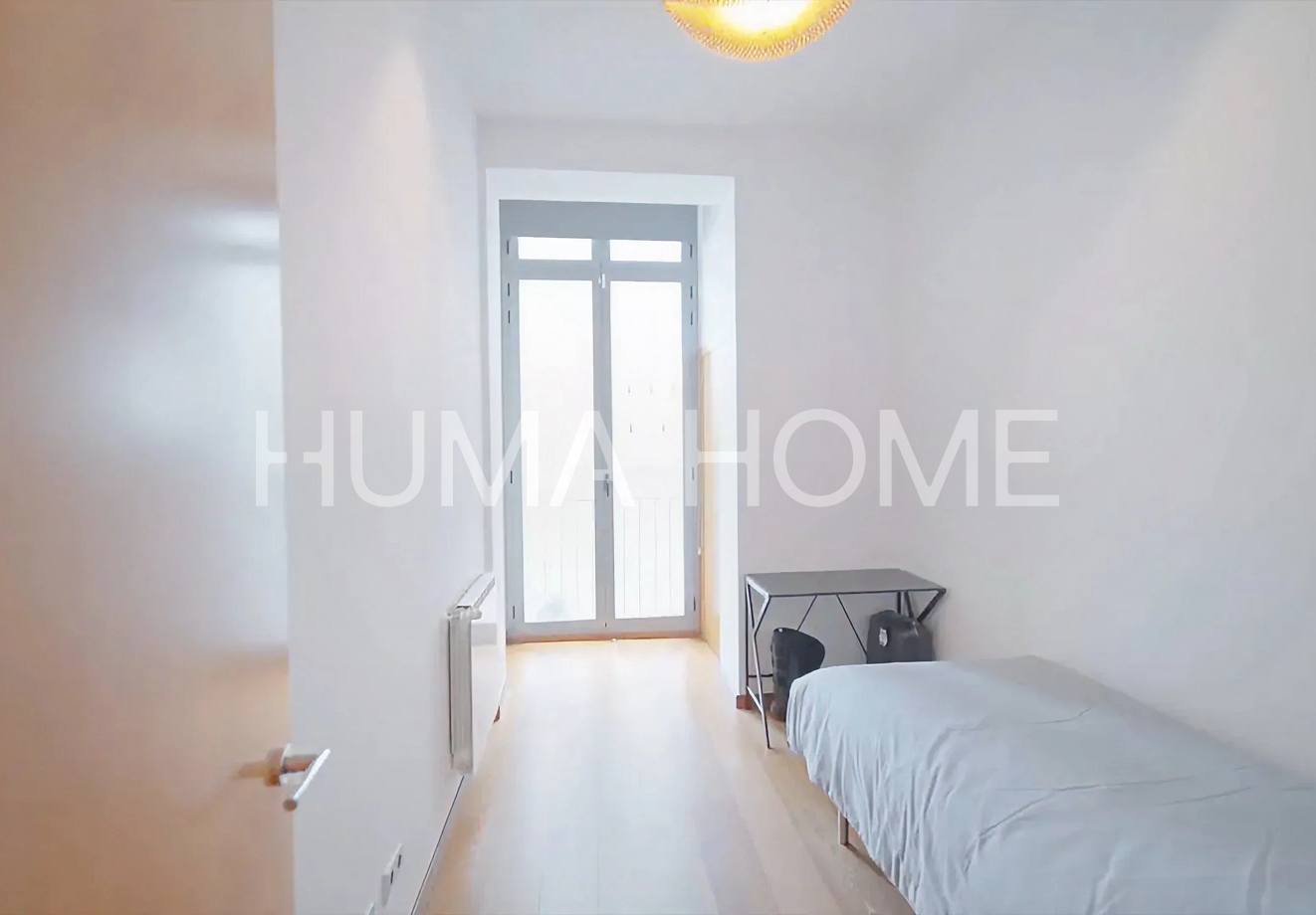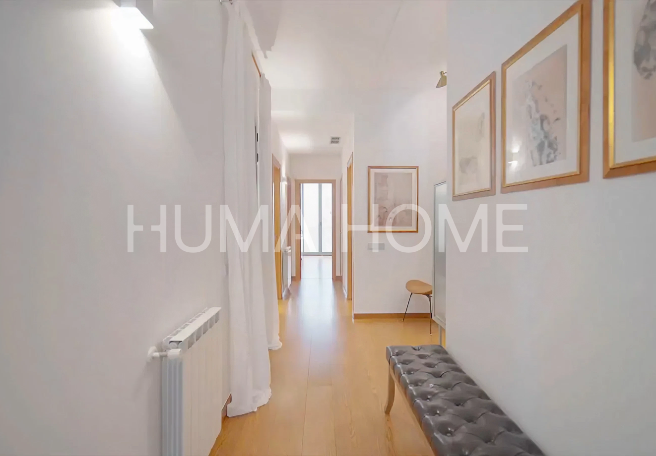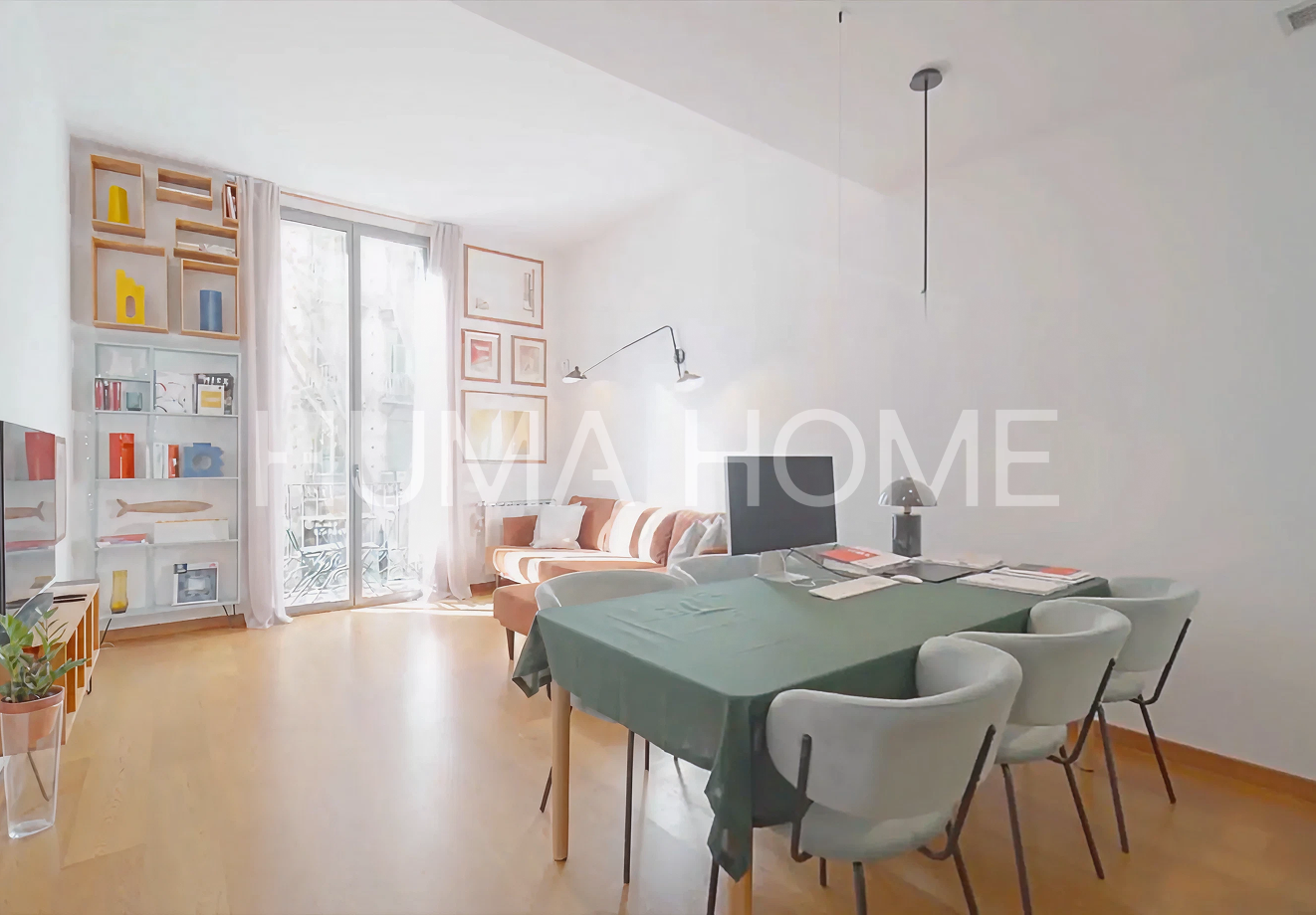 Semi-new 2010 apartment resulting from comprehensive rehabilitation of a representative 1890 building located in the heart of Eixample. The 100m² built property is characterized by its views of the beautiful pedestrian Girona street and southwest orientation providing sun and abundant natural light. The layout clearly differentiates day and night areas. Upon entering, an entrance hall leads to both environments. The day area features an open kitchen to a spacious living room with natural light and large window with balcony facing the pedestrian street. The night area houses bedrooms facing the quiet inner courtyard, offering a serene and silent environment. High ceilings at different heights stand out, with rooms exceeding 4 meters. The building has all current technology: fire protection system, electricity and plumbing according to current regulations, ducted air conditioning, double walls with thermal and acoustic insulation, double-glazed carpentry with thermal bridge break. The home includes an interior patio with wooden decking for plants and flowers. Individual gas boiler heating and spacious modern 6-person elevator. Building hall with marble mosaics and Venetian stucco walls. Being recently comprehensively rehabilitated, it doesn't need technical inspection until 2060 and there are no community assessments planned.