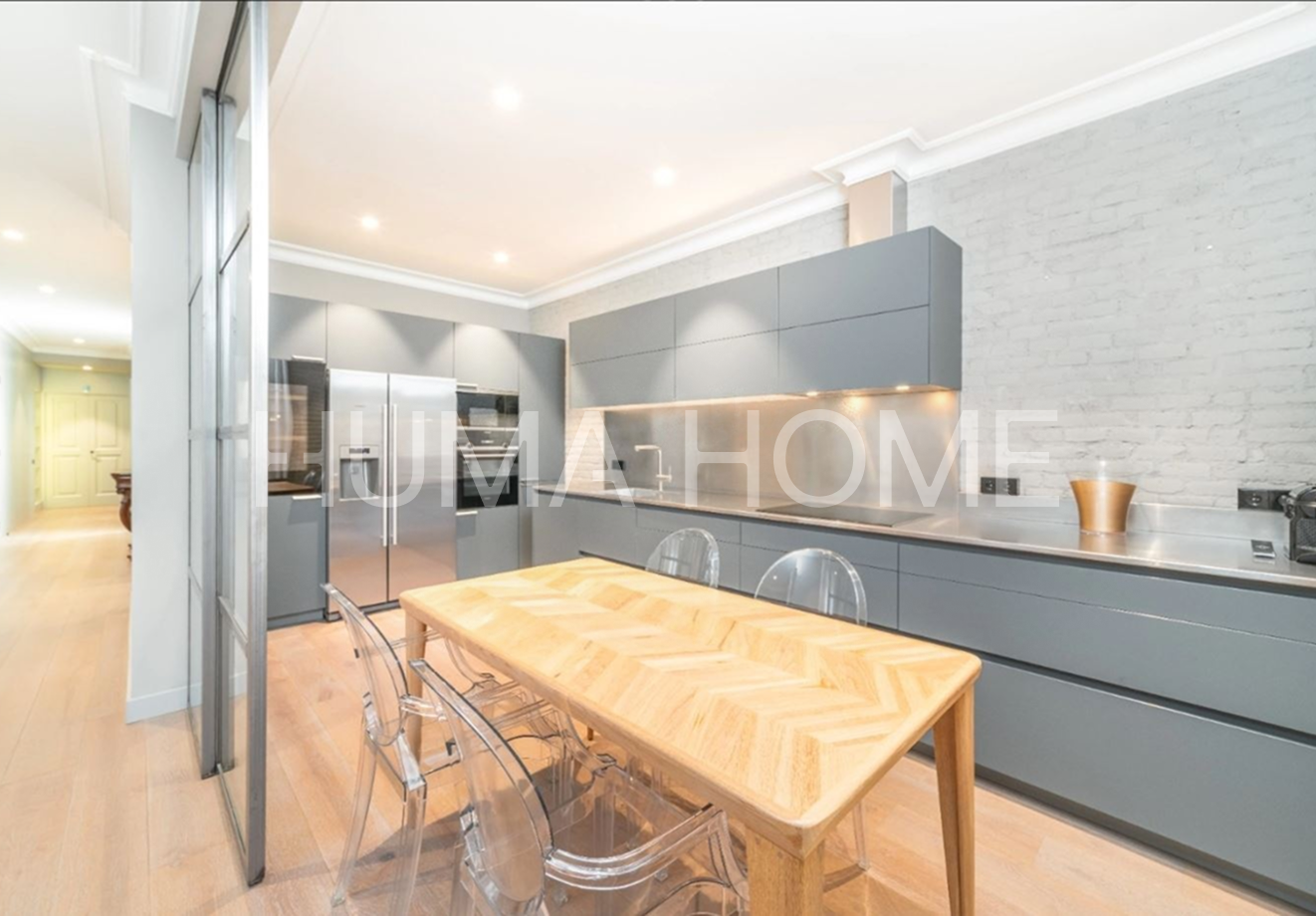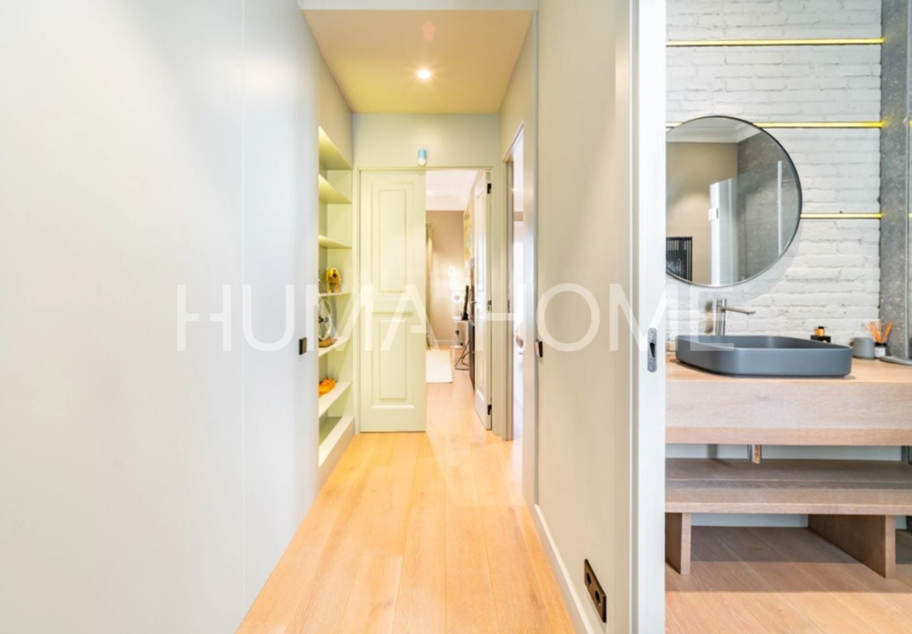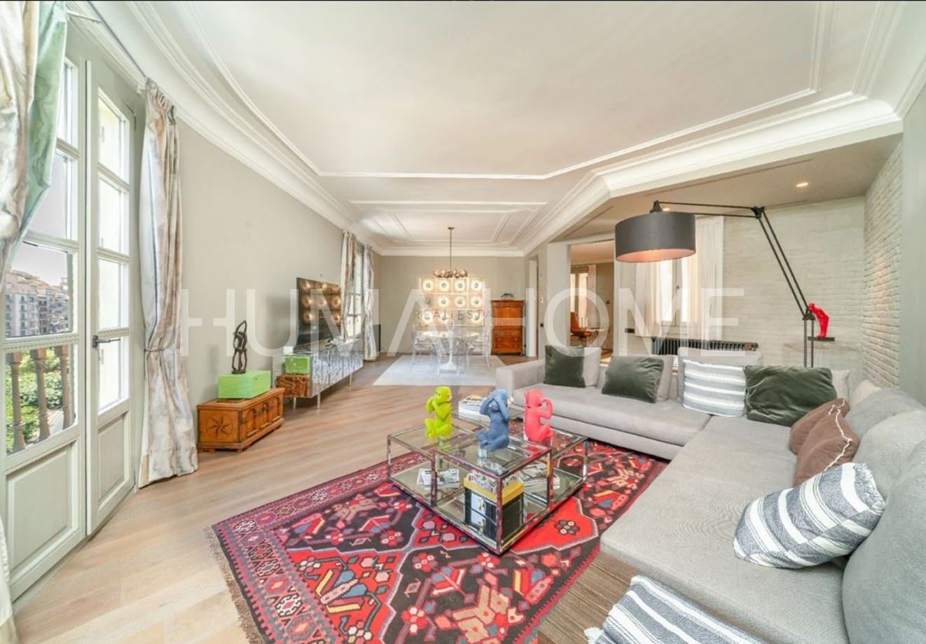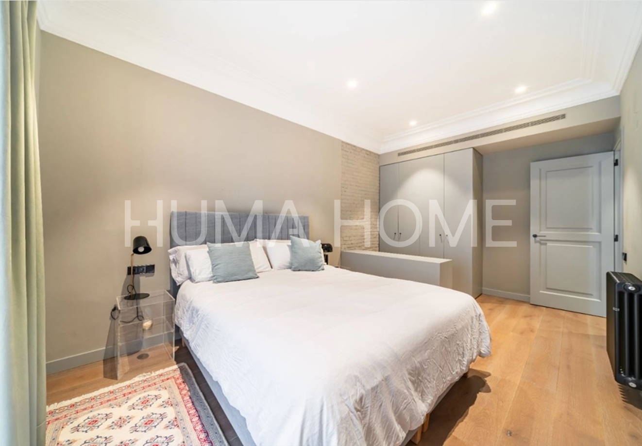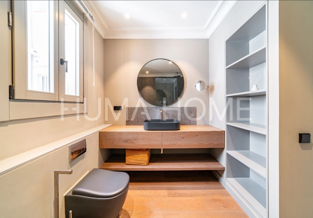 Eixample - 3 Bedrooms, Modern Layout Recently renovated apartment in classic representative Eixample building, next to Paseo de Gracia. Excellent location for walking distance to good restaurants and shops. The property features very modern layout. Large-format living-dining room with windows to street on corner of block, with pleasant views. Office area next to living-dining room. Modern kitchen with sliding door for independence and possibility of dining inside. Guest toilet and laundry-type area. Master suite with dressing room and full bathroom, double bedroom, single bedroom, and full bathroom with shower. Sold unfurnished.