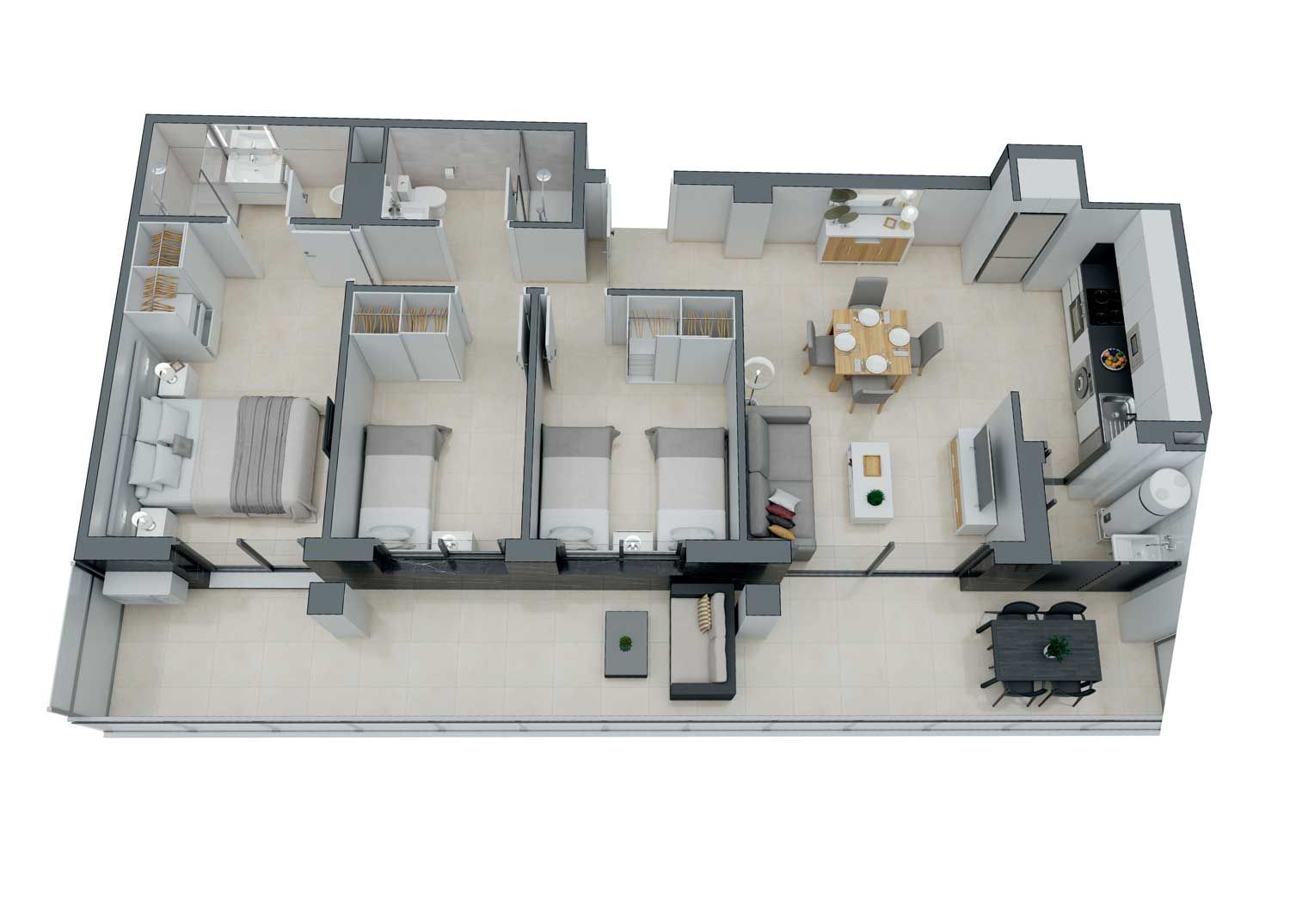Unit with 3 bedrooms, 2 bathrooms, 104 m² built area.