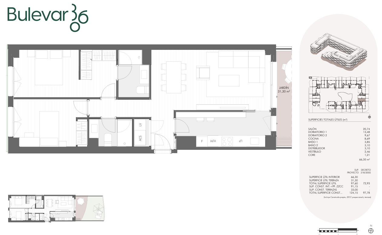 Unit with 2 bedrooms, 2 bathrooms, 125 m² built area.