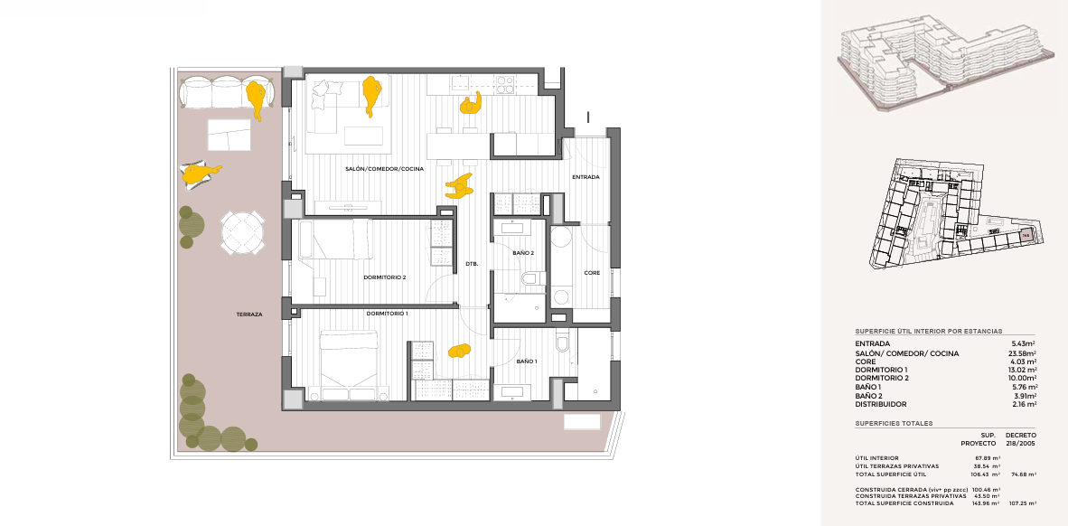 Unit with 2 bedrooms, 2 bathrooms, 144 m² built area.