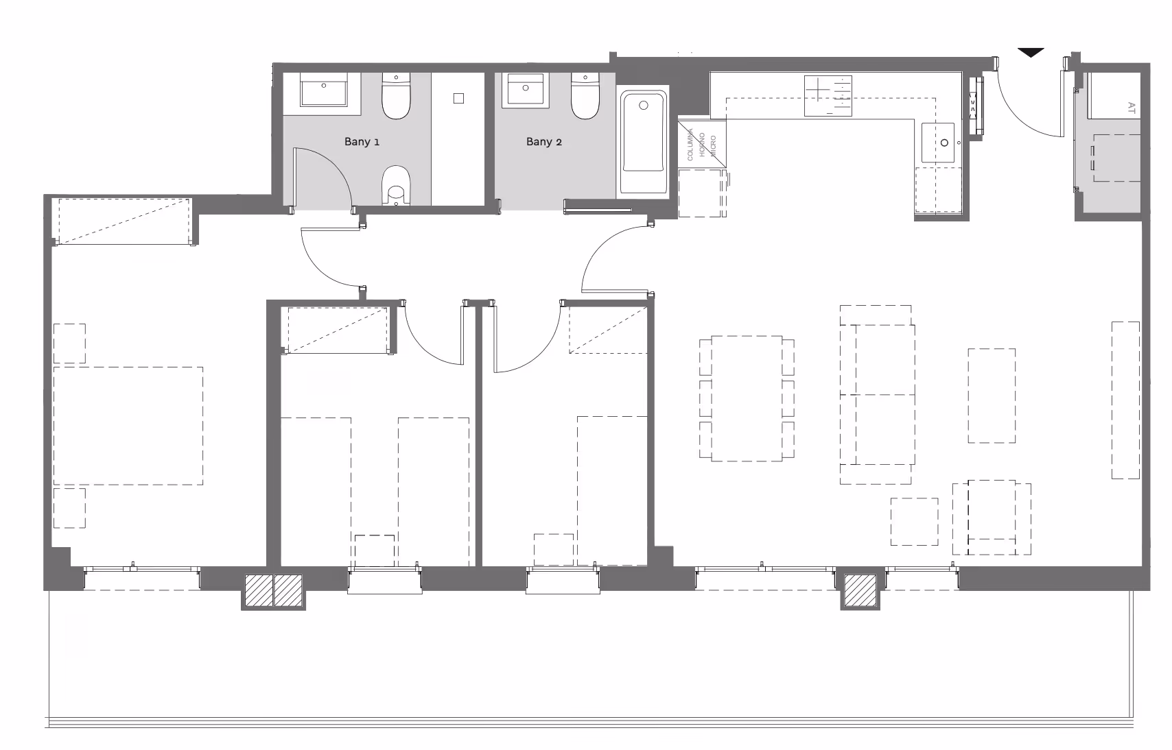 Unit with 3 bedrooms and 2 bathrooms. Built area 115 m²; Usable area 80 m².