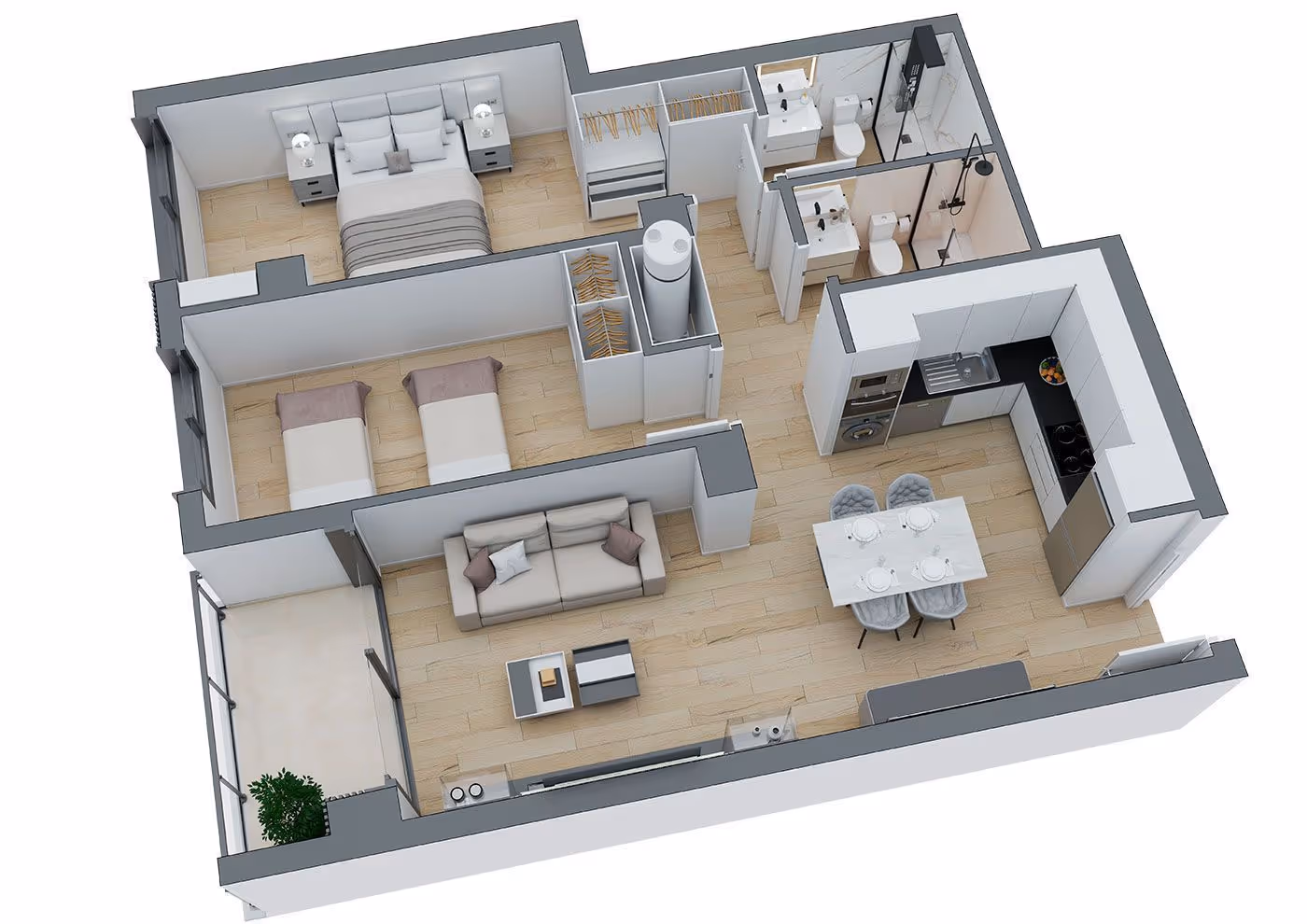 Unit with 2 bedrooms and 1 bathrooms. Built area 77 m²; Usable area 73 m².