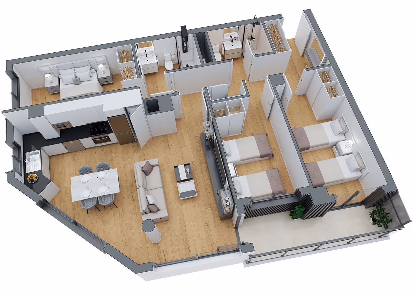 The layout is organized around the main living areas and private rooms.