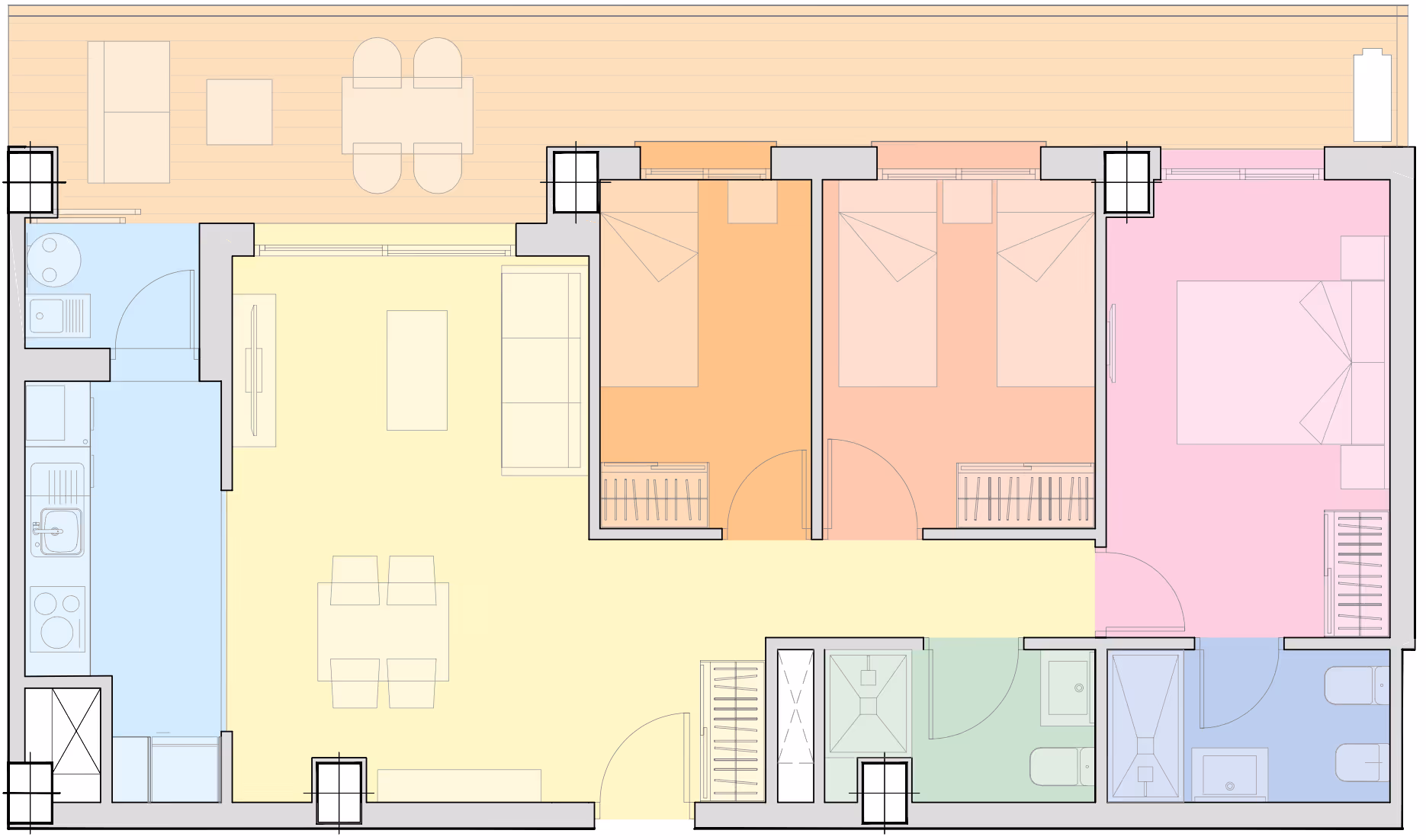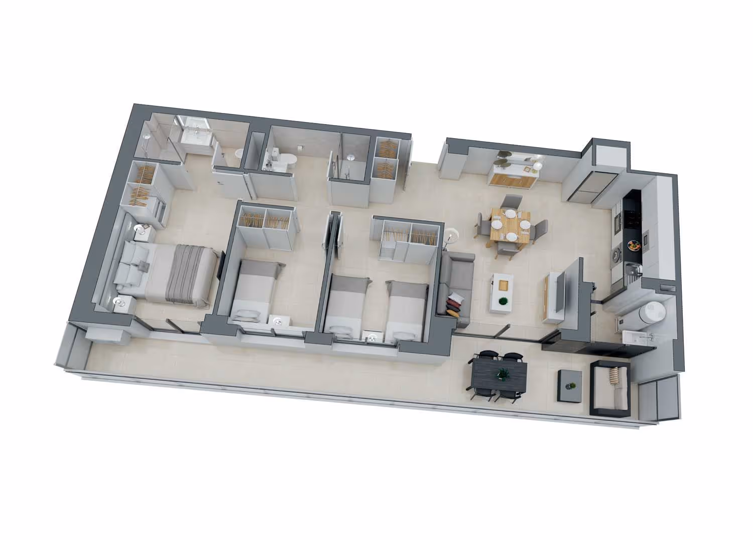 Elegance and Space in the City Center Exceptional 240m² home in a modernist building completely renovated in 2017 with high-quality materials. This apartment combines elegance, brightness, and spaciousness in a space designed for maximum comfort. The spacious living-dining room features three large windows giving access to balconies, creating perfect connection with the outdoors. High ceilings enhance its stately character, while the functional layout includes a large children's room with private entrance and access to a south-facing terrace that floods the entire space with natural light. The master suite surprises with a covered gallery, sofa area, dressing room, and luxury bathroom with shower and bathtub. It also features an additional suite with incorporated bathroom, guest toilet, independent kitchen with direct dining room access, pantry area, and laundry space. Finishes combine elegant parquet and marble flooring, with individualized ducted air conditioning and gas heating. Prime location near shops, restaurants, and public transport.