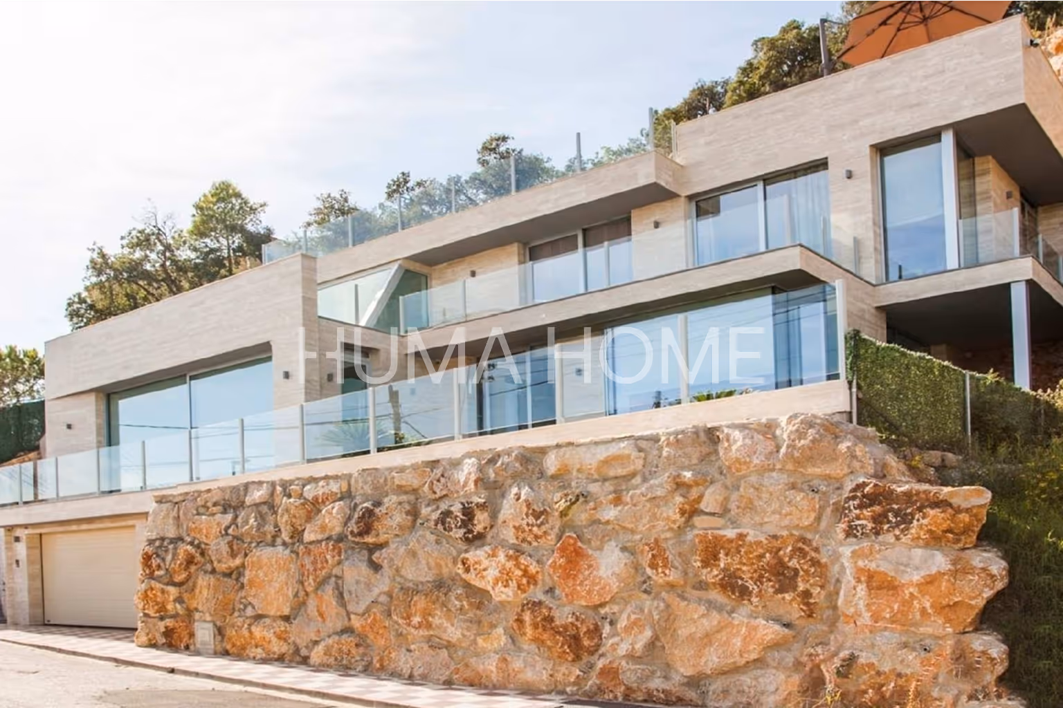 Modern house located in the Serra Brava residential area, about a 10-minute drive from the center of Lloret de Mar. The area is quiet and residential, with easy access to shops, schools, and other daily services. The property offers open views of the sea and the mountains and is arranged over several levels. The living room features a glass ceiling that provides plenty of natural light and opens onto a terrace with a jacuzzi. The kitchen is fully equipped and separate from the living area. The house includes four bedrooms, four bathrooms, an elevator, and a garage for two cars. It is sold together with an adjacent plot, offering the option to build an additional house. A comfortable and well-located home, combining views, space, and privacy close to the coast.