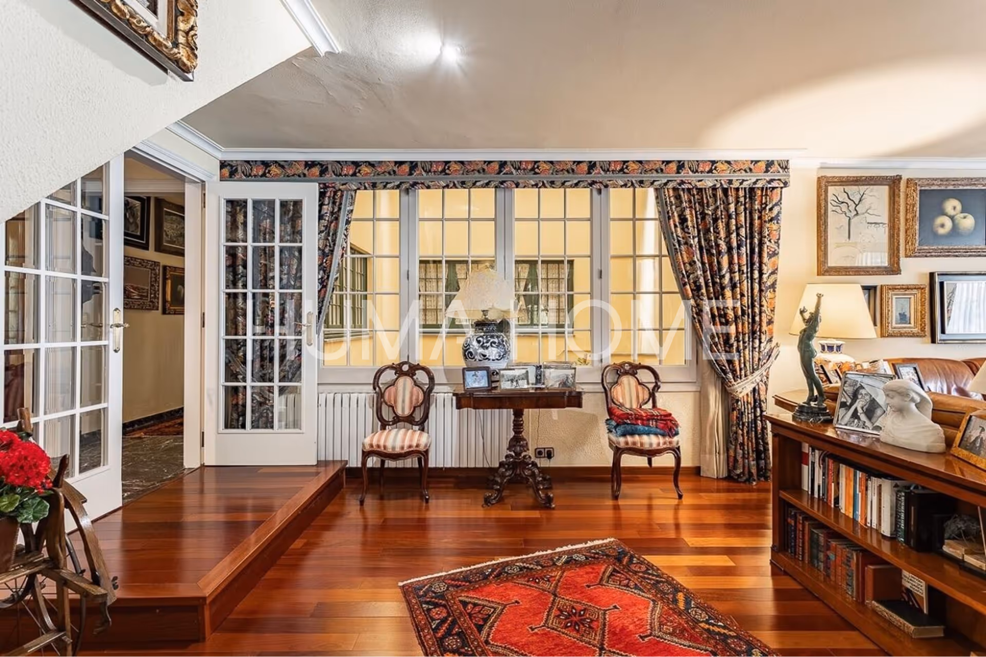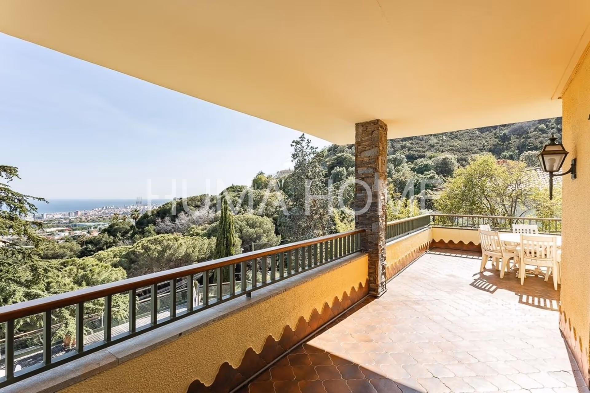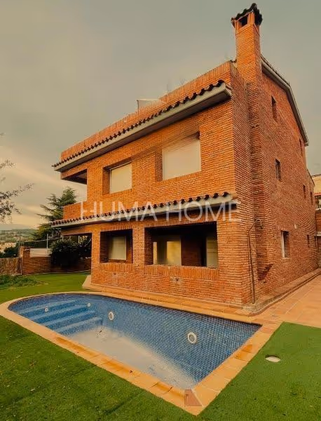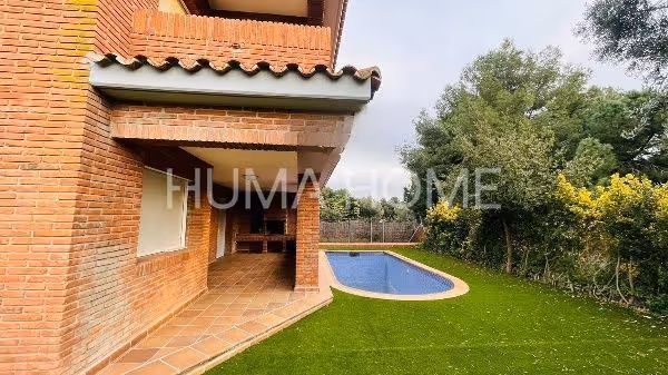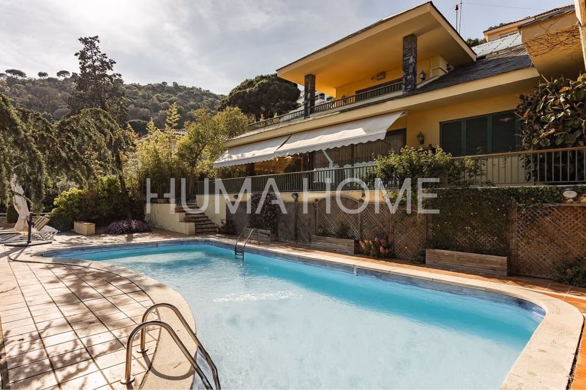 557m² 15 Minutes from Barcelona — Bright 557m² villa in the exclusive Mas Ram development, just 15 minutes from Barcelona, with stunning panoramic Mediterranean sea views. Set on a 1,260m² plot, it offers privacy, spaciousness, and secure environment with 24h surveillance. The property is distributed over three levels with generous spaces and natural light throughout. The ground floor features six double bedrooms, four full bathrooms, and two toilets. The independent French kitchen by prestigious firm Lacornue is fully equipped, with outdoor laundry, gallery, wine cellar, pantry, and gym. The spacious living-dining room connects to one of three terraces. All rooms have built-in wardrobes and air conditioning. The semi-basement level has parking for four vehicles, two storage rooms, and changing rooms by the pool. The exterior is perfect for family enjoyment with private pool, established garden, chill-out area, and pergola with sea views, ideal for relaxation and outdoor dining. The orientation favors natural light and spectacular sunsets. Mas Ram is one of Badalona's most valued residential areas, located in nature with quick B-20 access and proximity to international schools, sports facilities, and services.