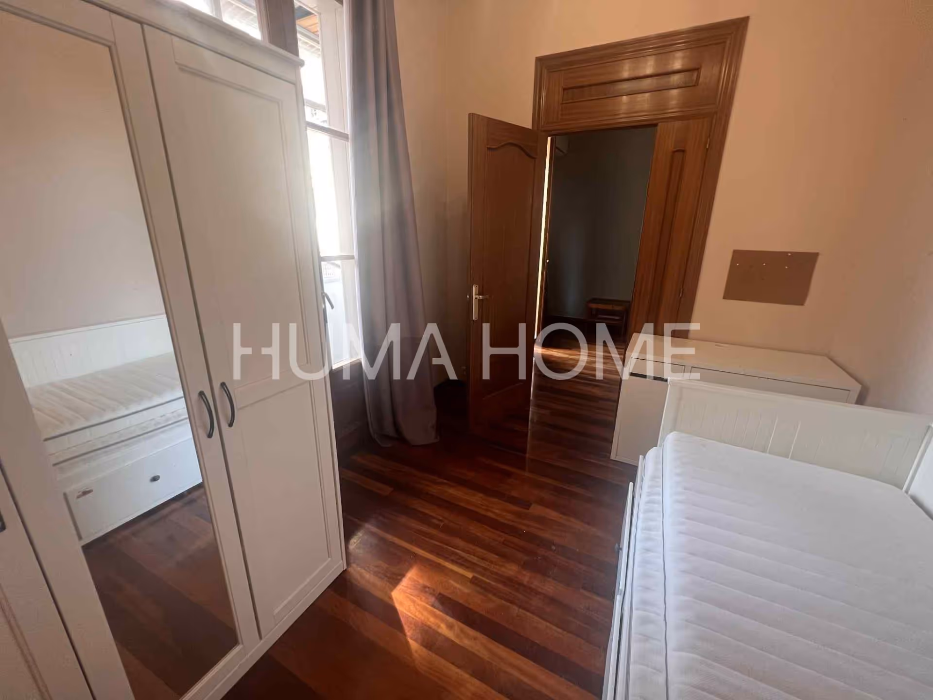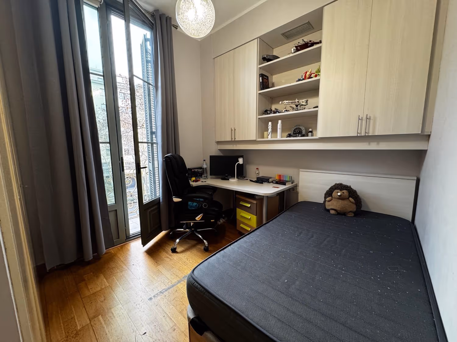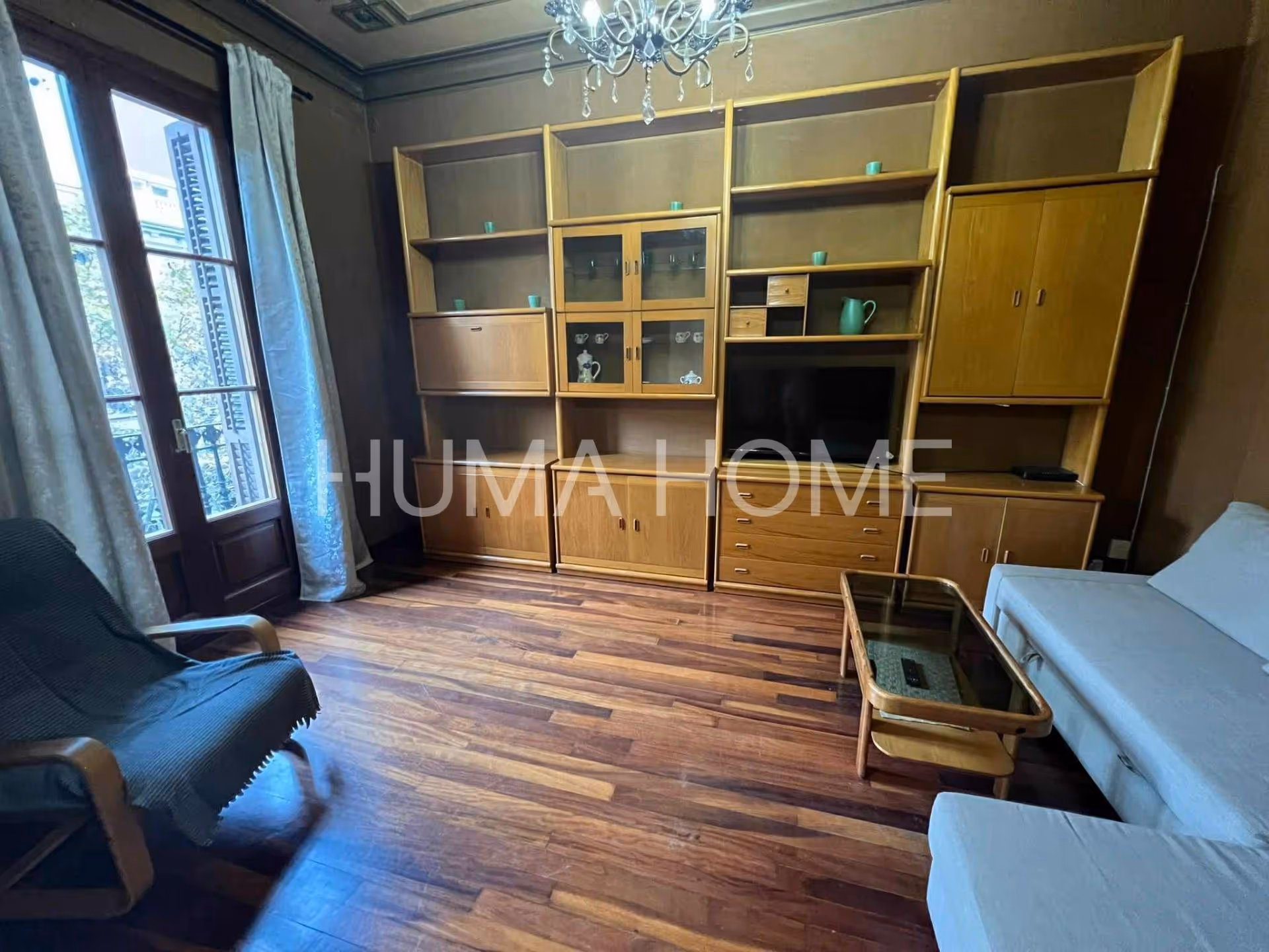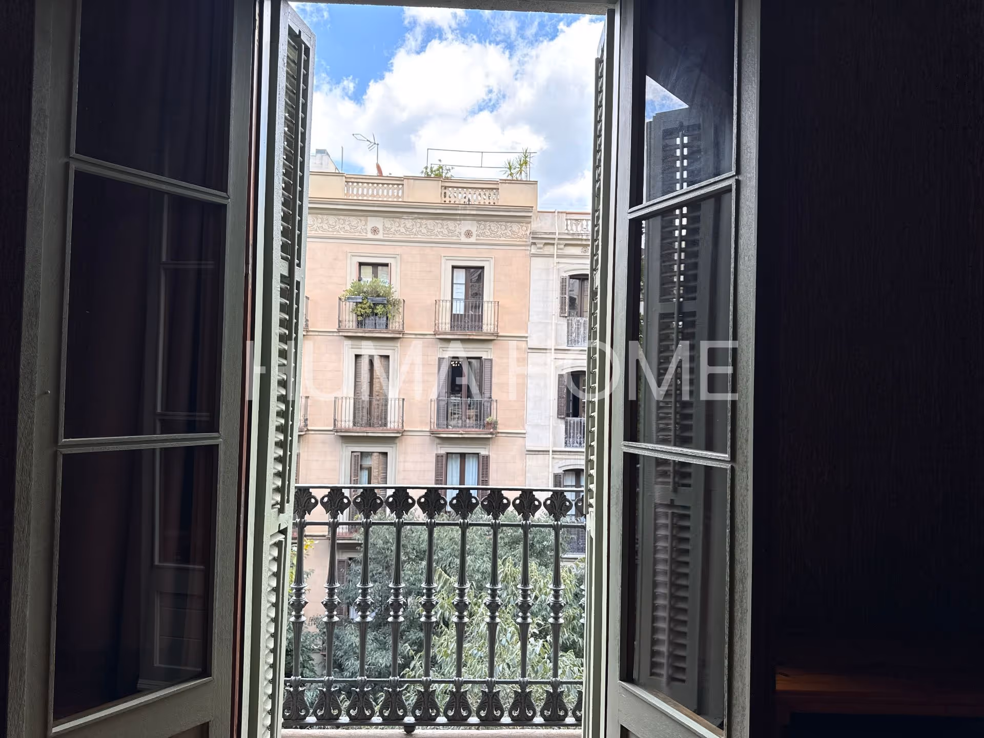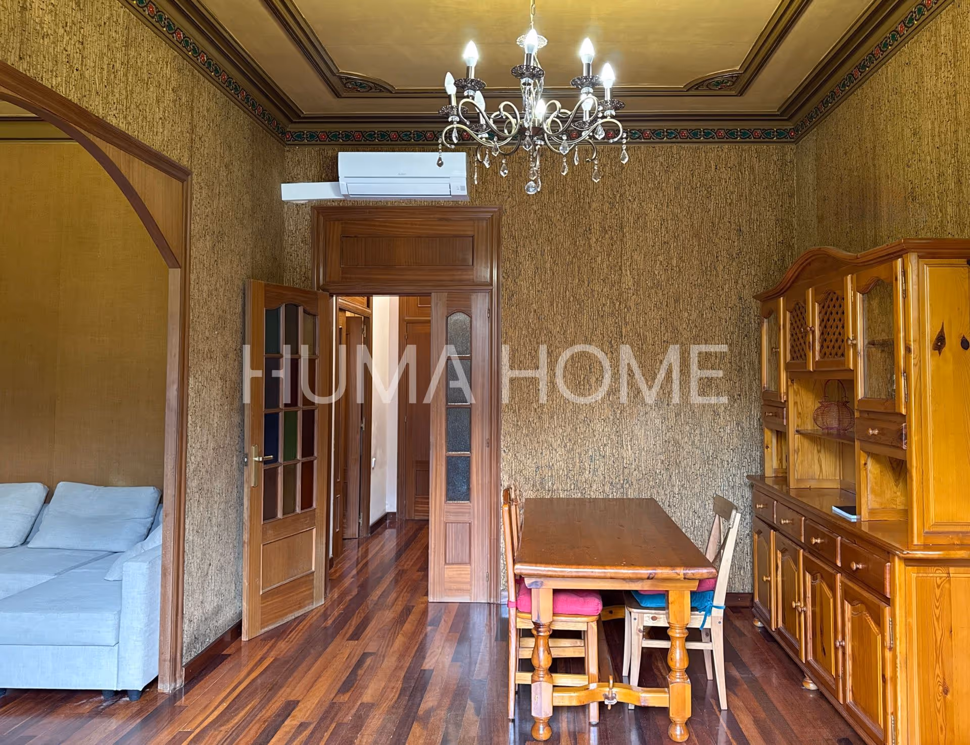 Spacious modernist apartment in an elegant classic building, perfectly located 5 minutes from Paseo de Gracia. Previously divided into two independent units, it now offers ample space for families. The apartment features a living-dining room, main bedroom, office convertible to a second bedroom (with sofa-bed), equipped kitchen, and full bathroom with bathtub. Stunning high ceilings and balconies in every room create a bright, spacious atmosphere. All rooms face the street with charming Bruc street views. The location is unbeatable: Girona metro station 2 minutes away, Mercadona supermarket and multiple restaurants within walking distance. The vibrant neighborhood offers 391 dining options within 15 minutes, from Minamo to La Fuga (Italian with vegan options). Pharmacies, schools, and the beautiful Torre de les Aigües Gardens complete this central, convenient setting.