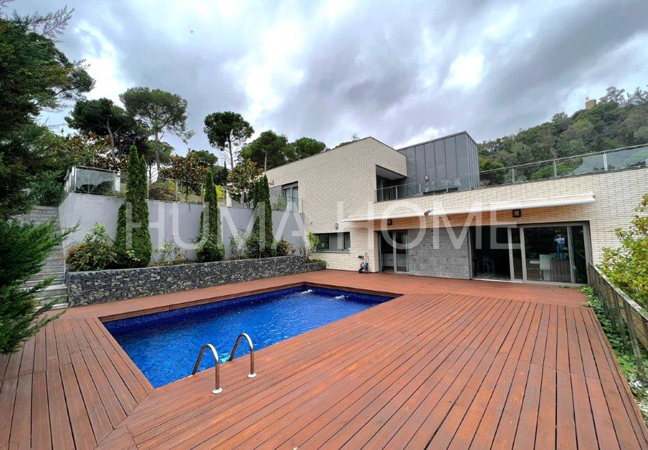 Chalet with Mountain Views and Pool. 271m² chalet on 808m² plot with open mountain views in quiet residential area of Pallejà. Perfect for families seeking space, privacy and quality of life near Barcelona. The home has 5 bedrooms and 3 bathrooms distributed in a spacious and comfortable house. Outside features private pool, garden and terrace ideal for enjoying good weather and outdoor gatherings. Located in a natural and peaceful setting, the chalet offers peace and calm without giving up connection to Barcelona. Excellent access by public transport and road, with several bus stops minutes away connecting to Barcelona's metropolitan network. A home where you wake up to mountain views and enjoy the tranquility of the surroundings.
