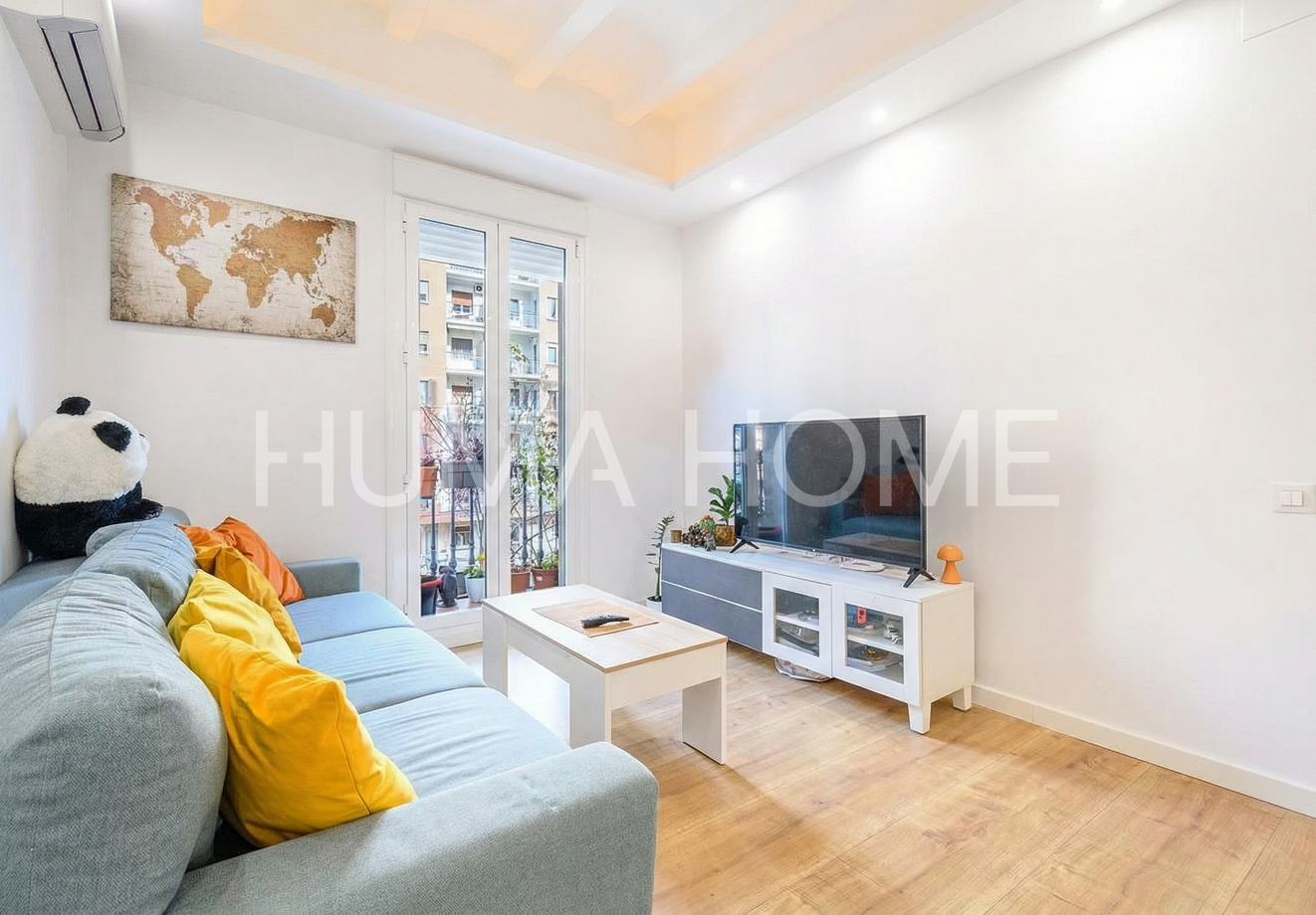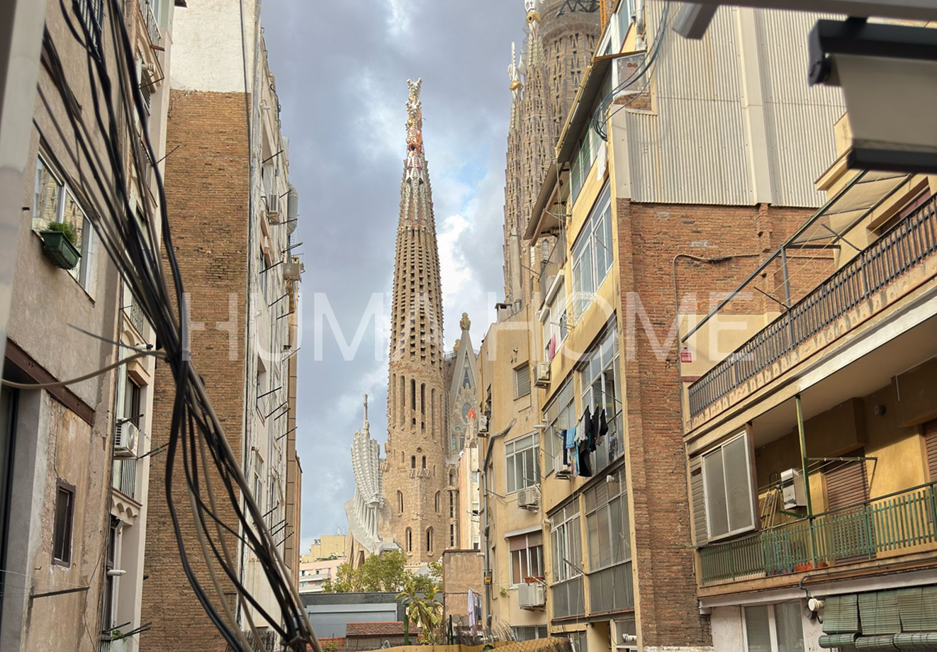 2 Bedrooms, Near Sagrada Família - Final Phase Bright 63m² property in final phase of complete renovation near Sagrada Familia. Functional layout with two independent bedrooms, spacious living room opening to balcony, kitchen-dining room, and modern bathroom with shower. Two balconies and integrated wardrobes. Complete renovation includes new electrical installation, fully renovated plumbing, 100L electric water heater, and ducted heating-cooling system. New aluminum balcony doors with double glazing, integrated perimeter LED lighting, and restoration of original ceiling elements in living room. New kitchen with appliance columns. Excellent opportunity to acquire property before official completion. Prime location, ideal for both living and investment. Delivery expected soon.