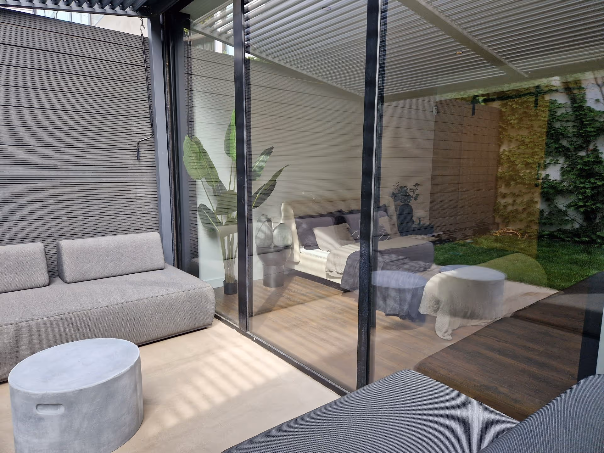 Designer penthouse with large terrace —140m² Total: 55m² Interior + 75m² Terrace Exclusive penthouse designed by renowned Parisian architecture studio, combining contemporary elegance with Mediterranean functionality. The 55m² interior property is distributed in an open day/night concept creating a bright and welcoming atmosphere. The jewel of the apartment is its spacious 75m² terrace functioning as a natural extension of the living-dining room, perfect for enjoying Barcelona's sunny weather. The outdoor space is equipped with a BBQ for outdoor dining and an exterior shower for hot summer days. In the rehabilitation, a two-part concept was employed: the rear surface was reserved for the bedroom and bathroom, while the central area serves as a hub organizing the entrance, kitchen, and living room. Original roofed surfaces were retained and the exterior front part was strengthened through construction of a prefabricated wooden shed. Central location in a safe area near Sagrada Familia, extremely quiet and a fast bike ride to the beach. The building does not have an elevator.